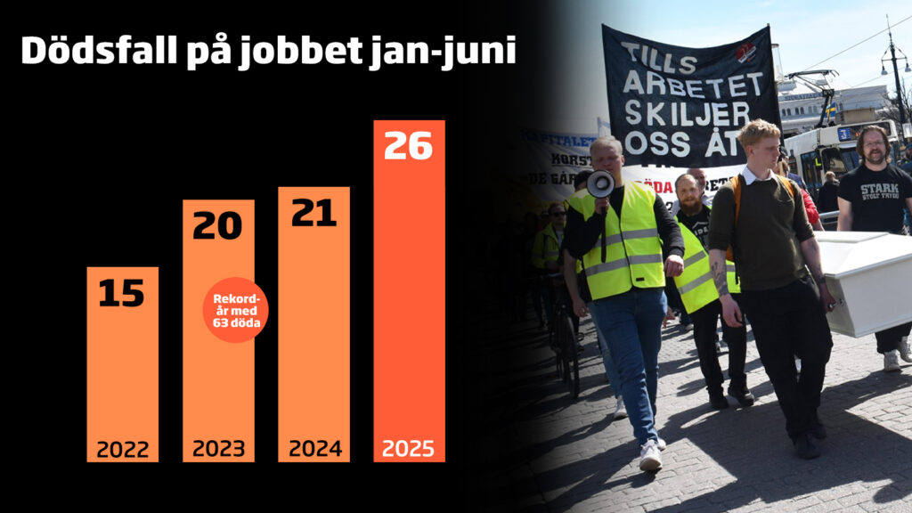 Under årets första sex månader har 26 personer omkommit på jobbet i Sverige – fler än under motsvarande perioder 2022, 2023 och 2024. Merparten var arbetare. Strikt sett har 27 personer omkommit – en lastbilschaufför på ett tjeckiskt åkeri förolyckades den 12 maj (han klämdes till döds mellan släp och lastbrygga ), men han räknas…