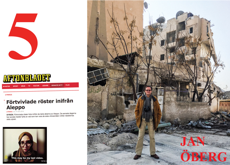 Han talade med invånare från den västra delen som var glada över att inte längre behöva vara rädd för rebellsidans ”helveteskanoner”. Han mötte invånare från den östra sidan som var lättade över att inte längre behöva leva under extremistgruppernas styre. Ingen av dem Jan Öberg mötte hade hört talas om de i väst hyllade Vita hjälmarna.