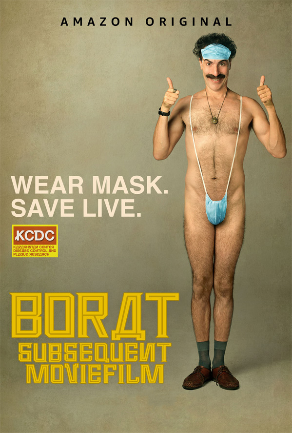 Borat 2 (egentligen Borat subsequent moviefilm: Delivery of prodigious bribe to american regime for make benefit once glorious nation of Kazakhstan) bjuder på samma koncept – Sasha Baron Cohen spelar den kazakstanske reportern som åker runt i USA och exponerar fördomar, absurditeter och hyckleri. För fjorton år sedan var det i Bushs konservativa USA, nu i Trumps.