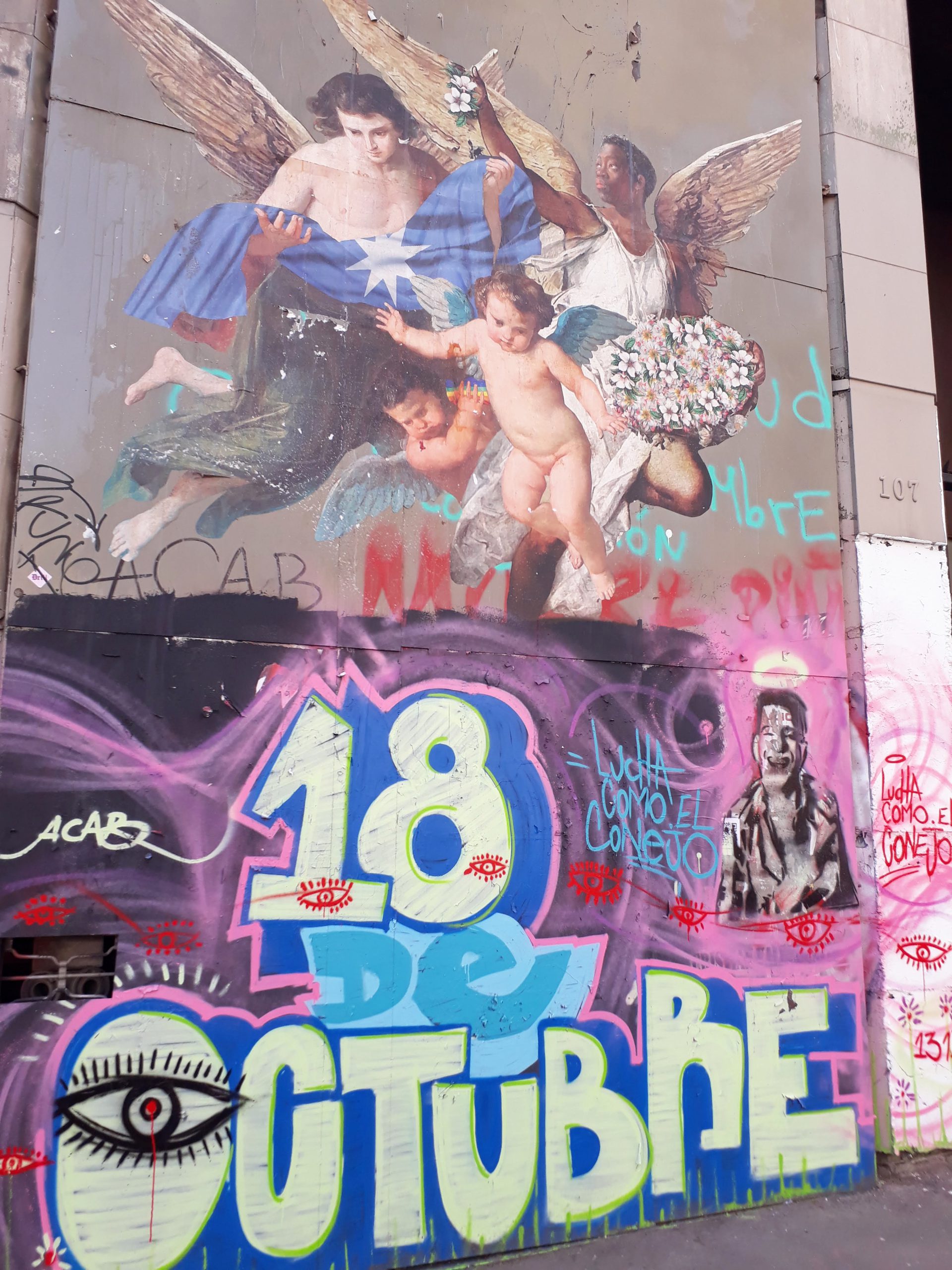 Väggarna i Santiago bokstavligen talar. Det som inte tas upp i media, de otaliga brotten mot mänskliga rättigheter, miljöbrotten där hela livsmiljöer förgiftats, den bristande tillgången till vård, till utbildning, den stora hopplösheten kan läsas där.