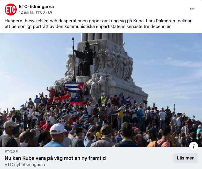 Även ”vänster”-tidningen Dagens ETC prydde en artikel om ”hungern, besvikelsen och desperationen” på Kuba med en bild på… kubaner som demonstrerar FÖR regeringen och revolutionen, vilket många i kommentarsfältet under också påpekade.