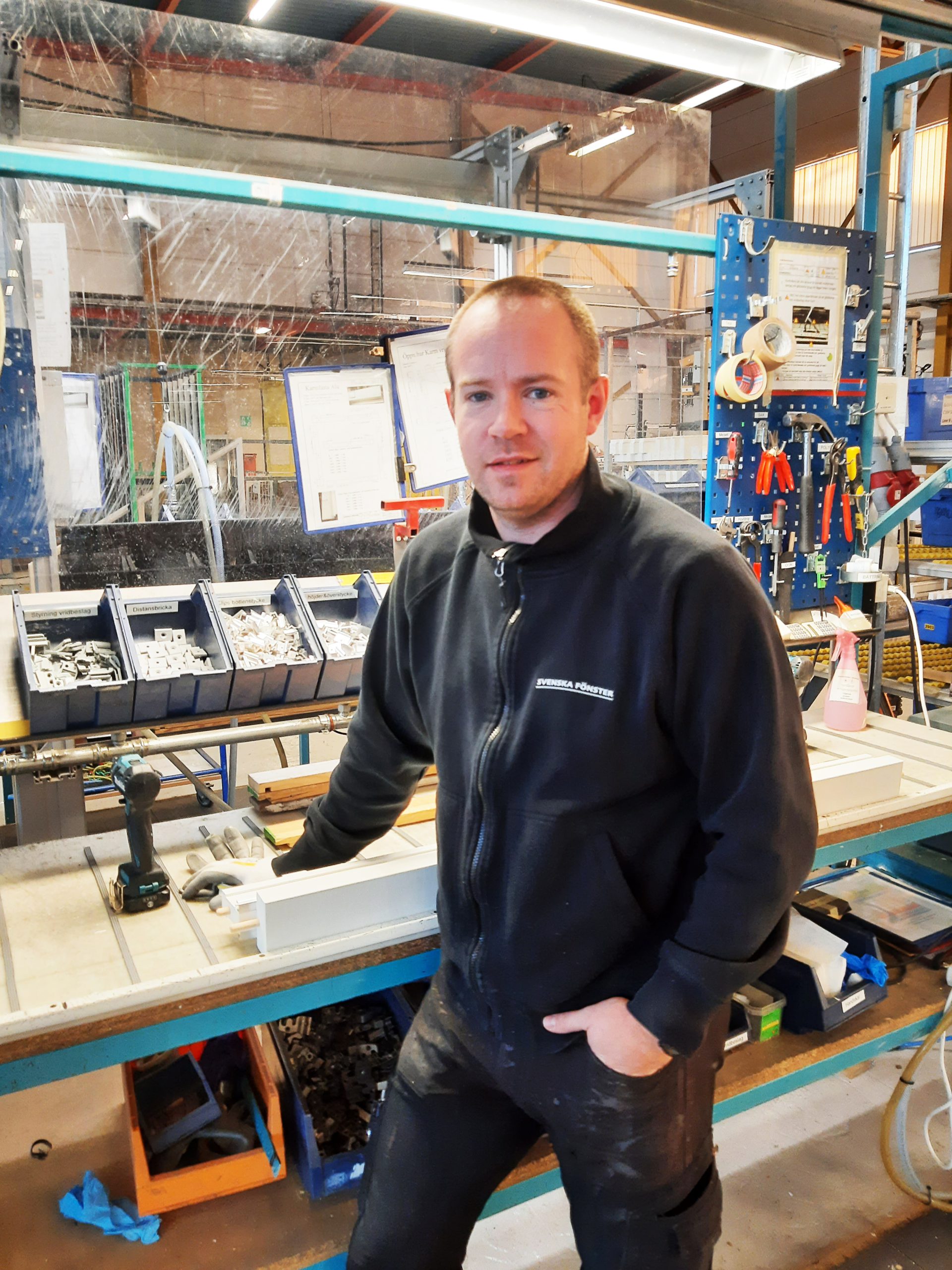 Jonas Edling arbetar som montör på Svenska Fönster. Det är han inte ensam om. Fönsterfabriken är en av Edsbyns största arbetsplatser – och lagets huvudsponsor. Två av hans lagkamrater är även hans arbetskamrater.