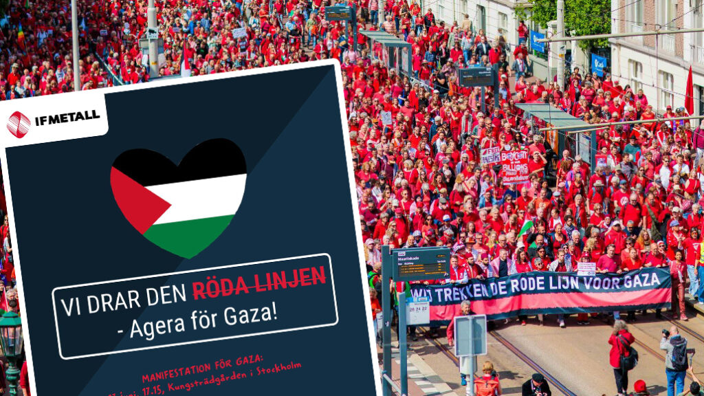 IF Metall uppmanar sina medlemmar att delta i tisdagens stora manifestation för Palestina i Stockholm. Ett av demonstrationens krav är att Sverige och EU ska "avsluta handel med Israel som kan bidra till folkmord och andra allvarliga kränkningar av folkrätten”.