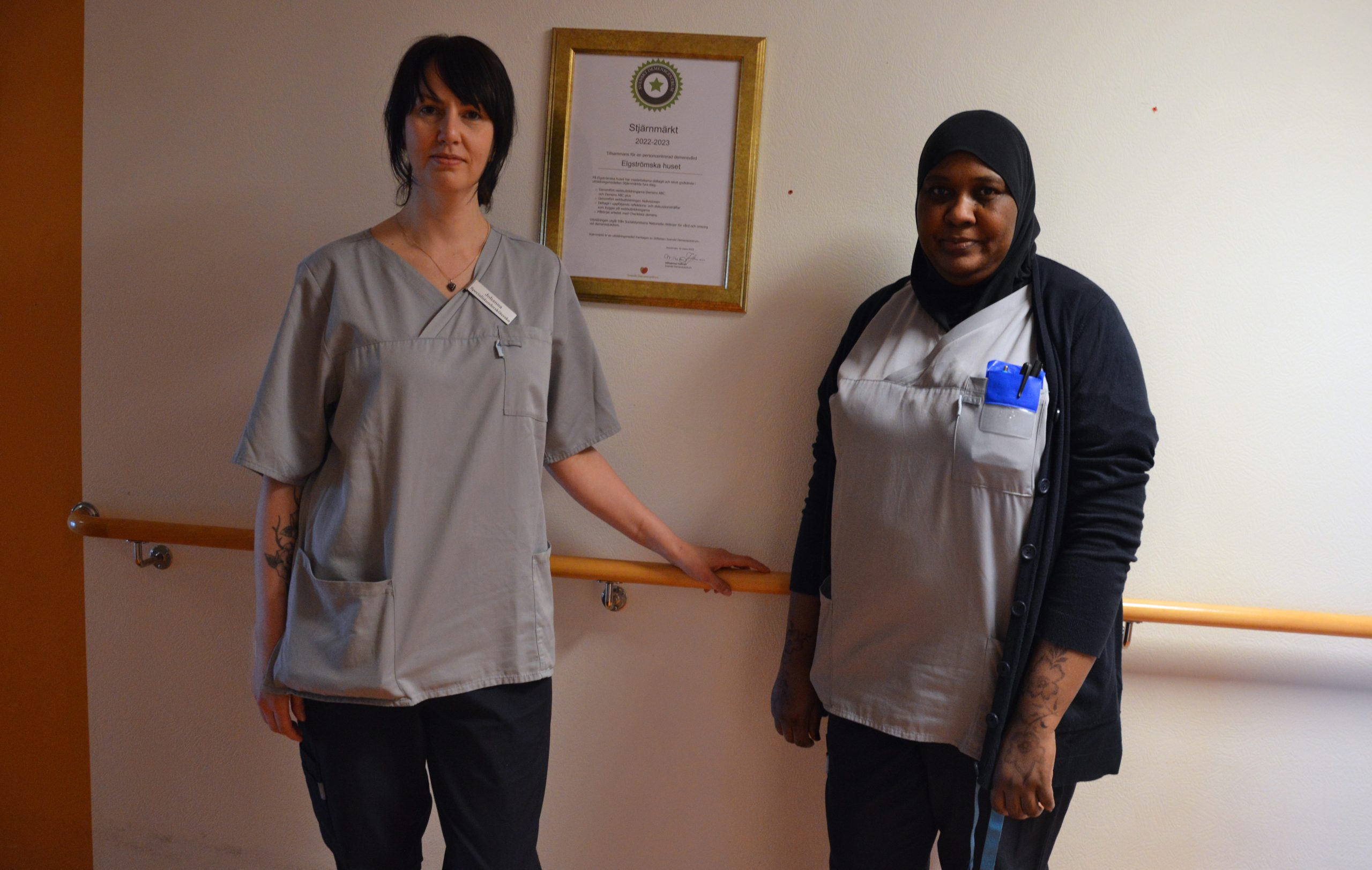 En våning upp på äldreboendet jobbar undersköterskorna Johanna Wind och Omaima Madani. De menar att en generell arbetstidsförkortning skulle innebära mer tid till återhämtning, men också till familj och fritid.