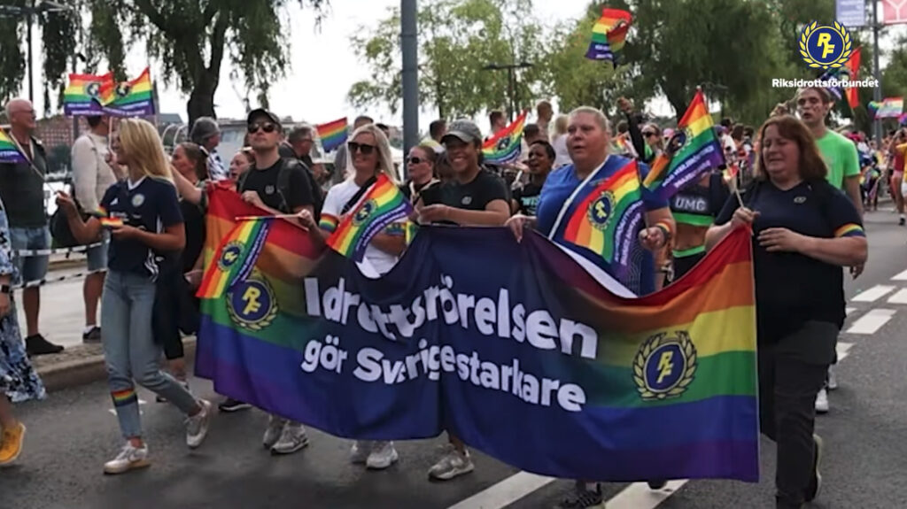 Riksidrottsförbundet marscherar alltid i Stockholm Pride (senast i år) och var snabba med att ta ställning för Ukraina när Ryssland trappade upp konflikten med sin invasion våren 2022. Men att stödja Palestina känns inte lika självklart för förbundet. Fotograf: Skärmdump: Facebook/RF
