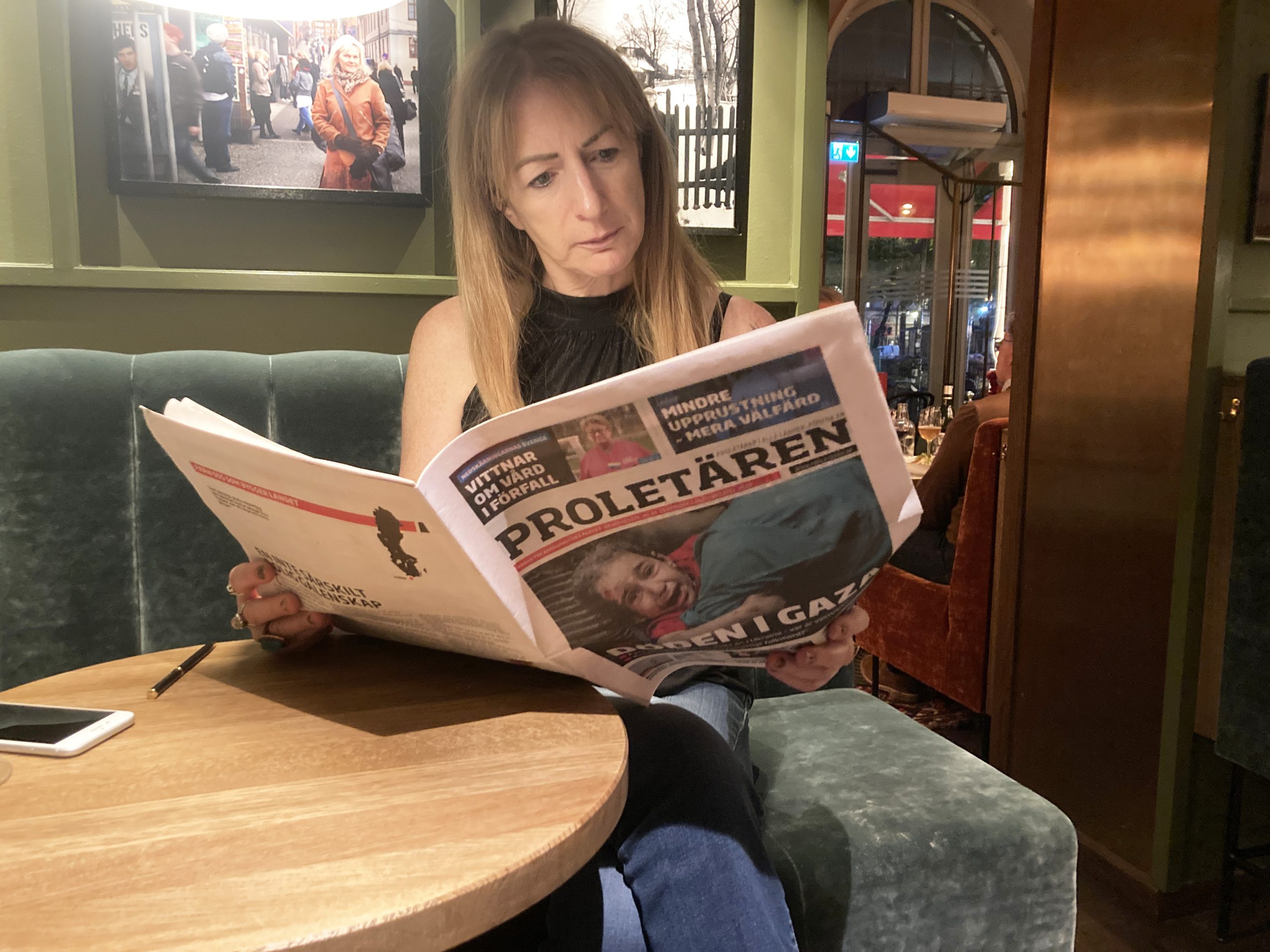 Efter energipåfyllning med falafel, kaffe och bakelser är det vidare till en knökfull Teater Tribunalen. Där håller Clare Daly ett eldigt tal mot Nato inför en jublande publik. Sedan är det samtal med den välfriserade moderatorn Kajsa Ekis Ekman – men som är lika uppfriskande motvalls mot kryperiet för Nato och USA – innan en generös frågestund som pågår framemot tiotiden på kvällen.