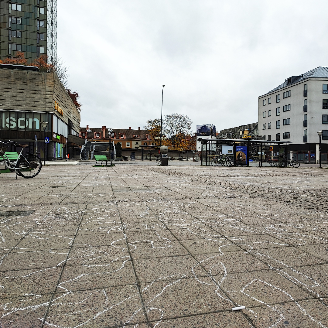 Många stannade till på torget och fotade och tittade, berättar Karin Z. Sunvisson. Tyvärr åkte nästan lika många bara tvärs över motivet på sina elsparkcyklar.