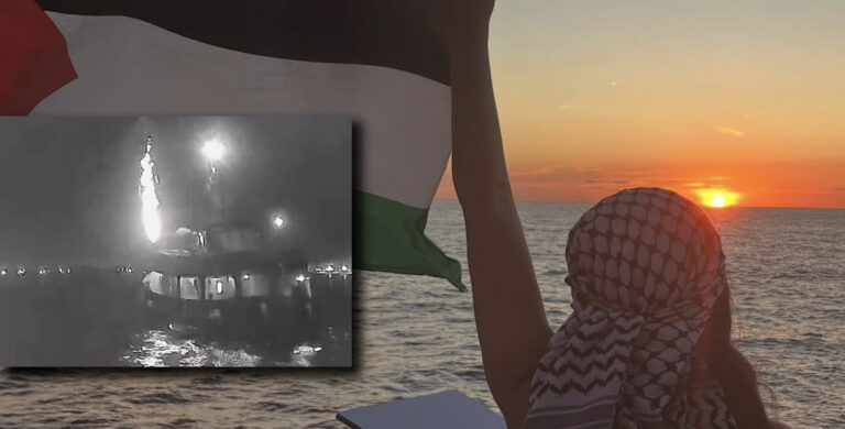 – Här ser ni hur en av våra båtar blir stoppade, säger den franska politikern Rima Hassan, som befinner sig ombord på en av båtarna, på en sändning på sociala medier.