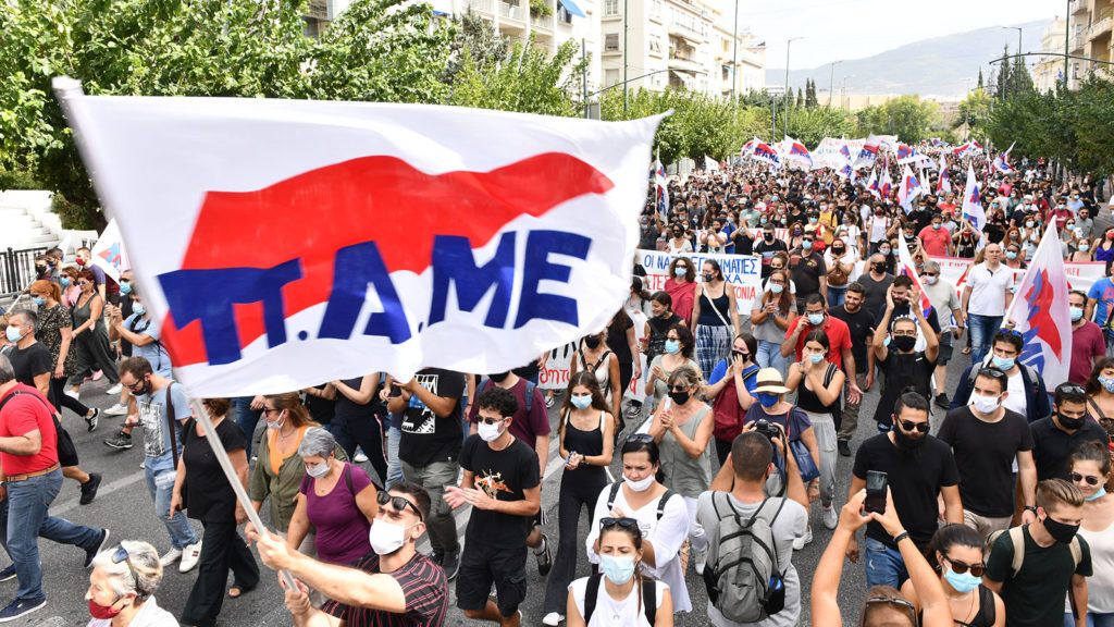 Tiotusentals hade samlats på gatorna i Aten i onsdags för att demonstrera mot nazisterna när domen skulle meddelas, under parollen ”Skicka nazisterna i fängelse”. Se här ett videoklipp från den militanta fackliga fronten Pames demonstration:
