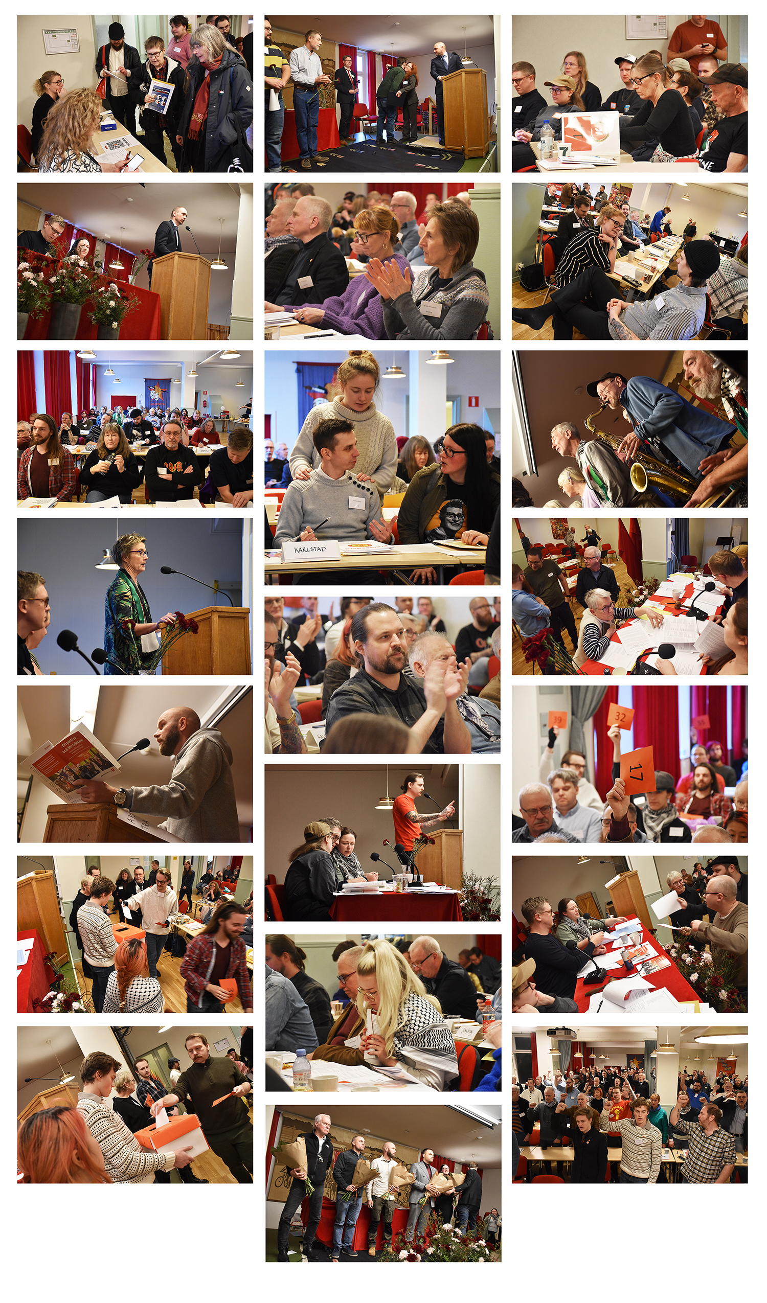 I sitt tacktal lyfte partiordförande Povel Johansson bådas betydelse för att hålla samman partiet under de turbulenta åren med inbördes motsättningar runt 2018 – och inte minst Marit Kallesons stora insats som kassör den gångna kongressperioden, då hon styrt upp arbetet med partiekonomin både centralt och ute i lokalavdelningarna.