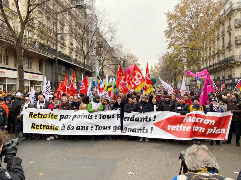 Den nyliberala regeringen, med den ökände presidenten Macron i spetsen, vill driva igenom en pensionsreform som skulle innebära en allmän sänkning av pensionsutbetalningarna och en höjning av pensionsåldern för många arbetargrupper. Istället för att pensionen ska grundas på arbetares slutlön, ska den grundas på ett medelvärde, och ett nytt poängsystem som bestämmer när arbetare kan börja ta ut pension.