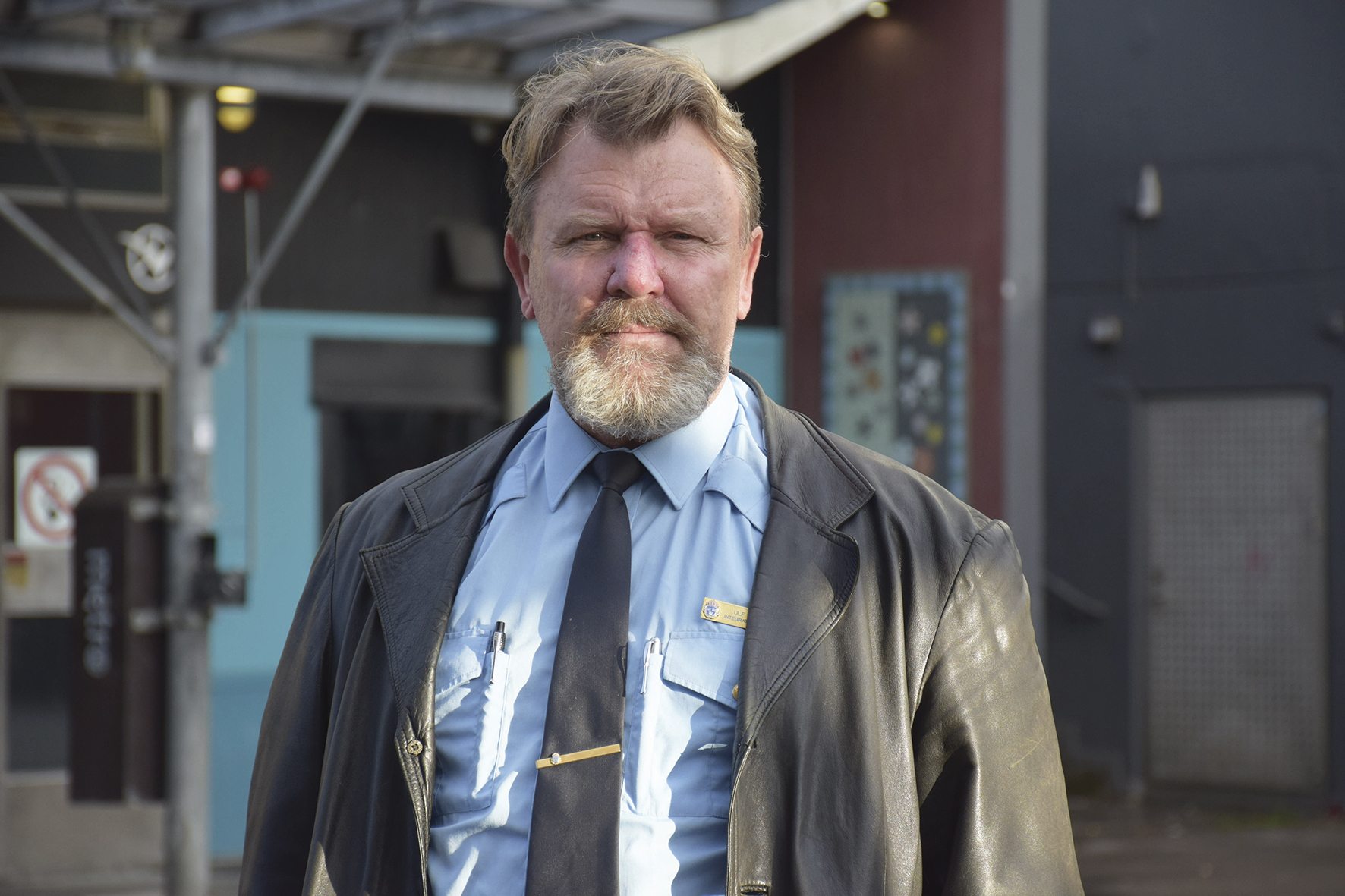 – Här borta i tiden såg poliserna ut som jag, säger han och drar handen över sin enkla uniform.