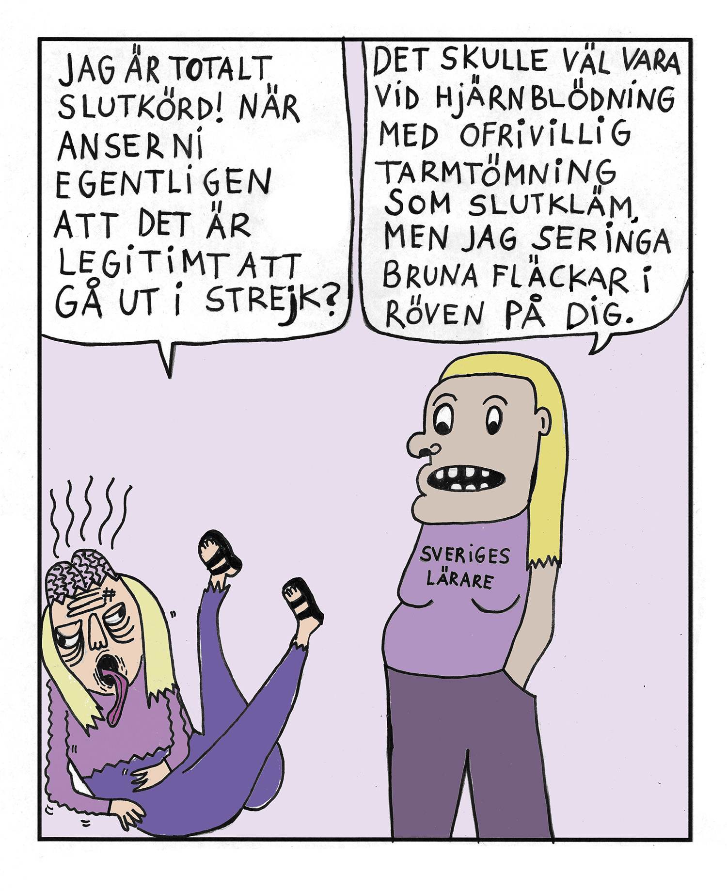 – Det är ju det som är frågan. Jag har inte svaren. Men man hoppas ju att det ska ske nånting och att Sveriges Lärare skulle våga säga: ”nu är det nog”.