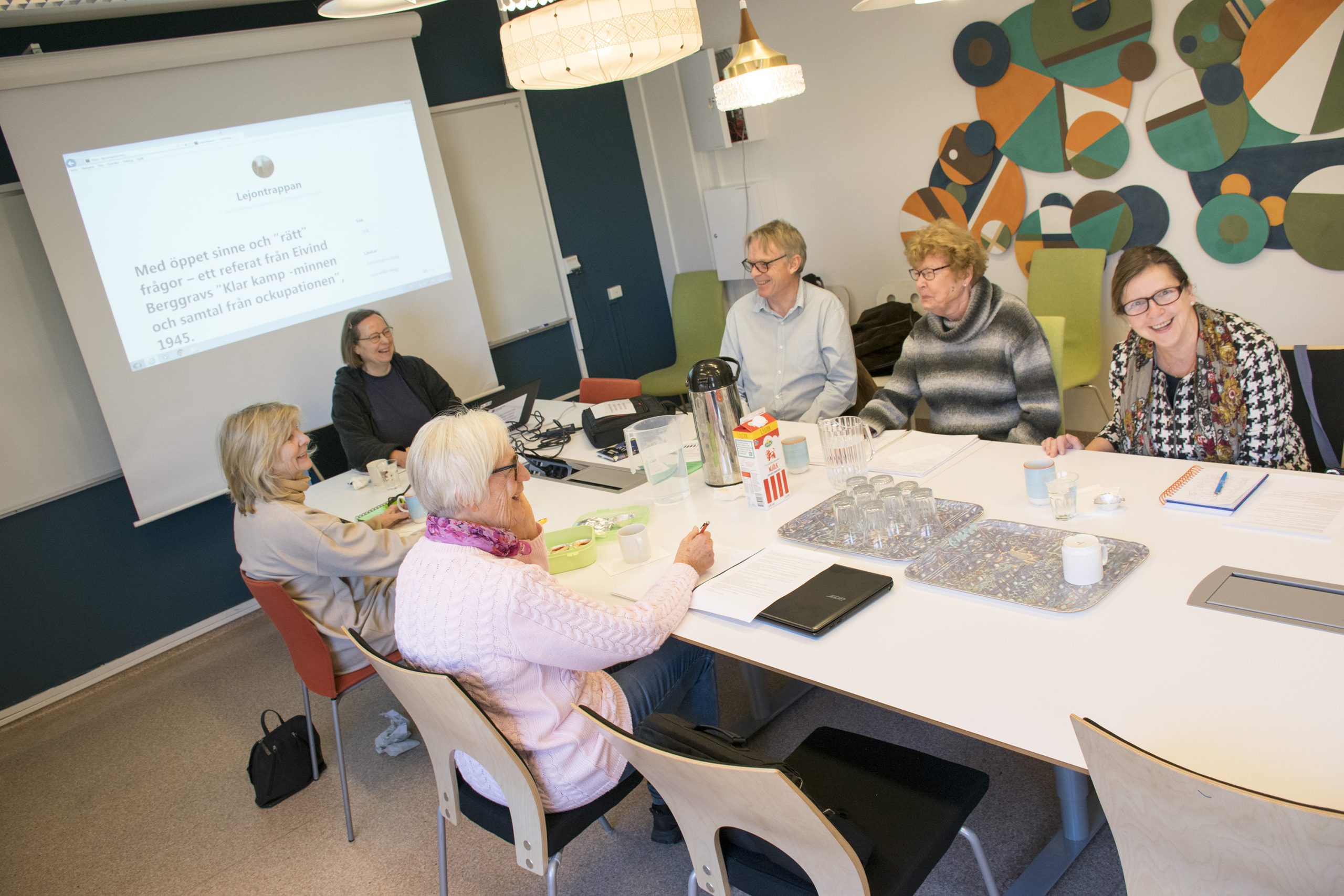 På Livslusts skrivarcirkel träffar vi Eira Hillerström, Görel Bråne, Birgit Eklöf, Zaiga Holm, Dan Johansson och volontären Helena Lindbom, som håller i cirkeln.