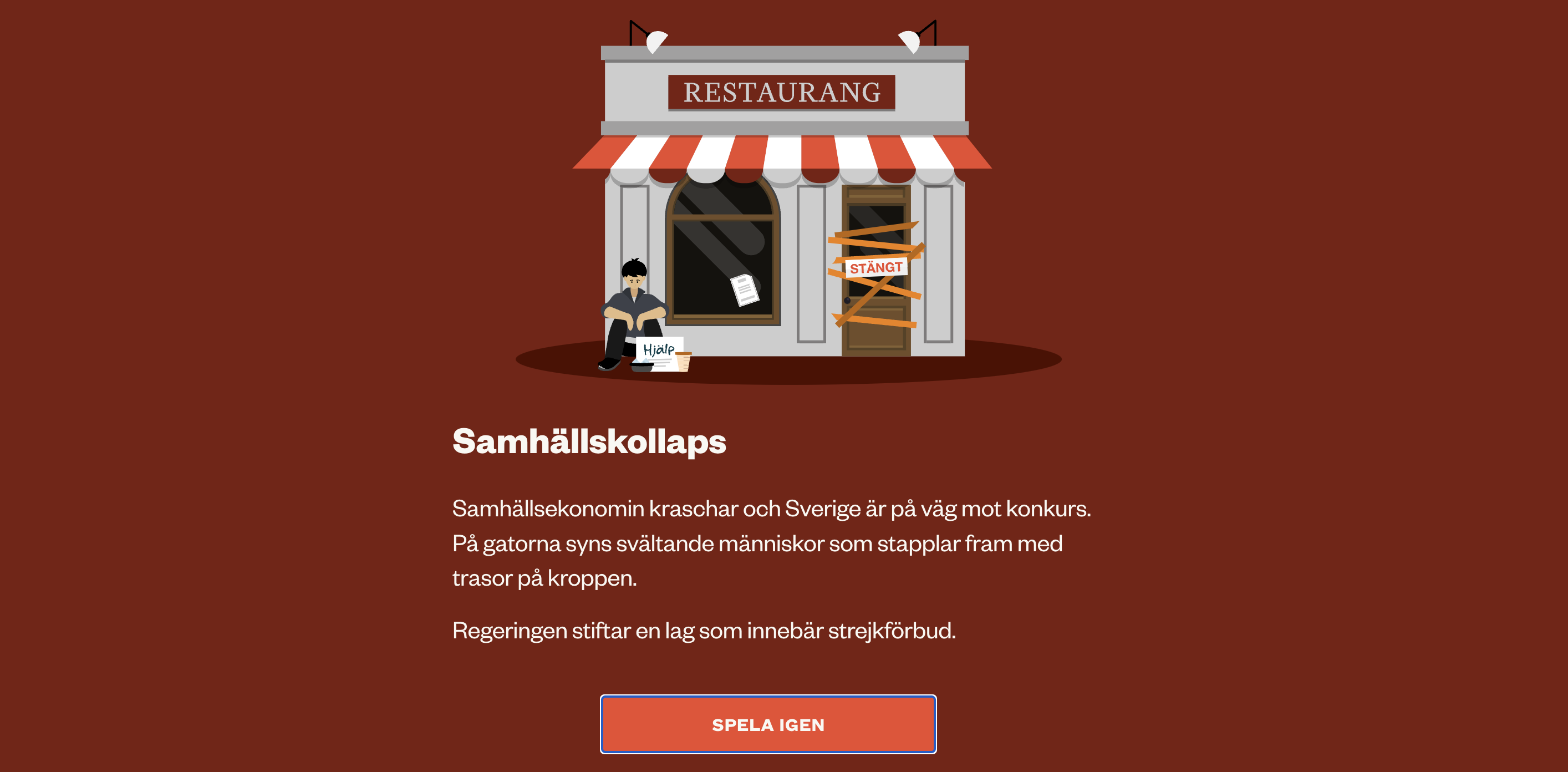 Ändå manar experter, LO och Svenskt Näringsliv arbetare att hålla tillbaka sina lönekrav – löner i takt med inflationen riskerar leda till samhällskollaps, som LO-tidningen Arbetet pedagogiskt lärt oss genom sitt spel Lönekampen.
