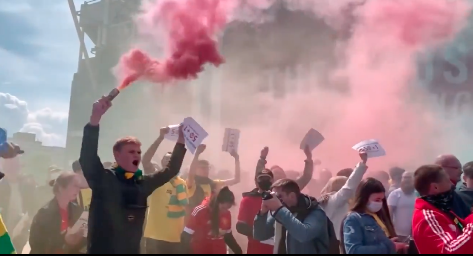 Inför söndagens stormöte mellan Premier League-rivalerna Manchester United och Liverpool samlades tusentals Manchestersupportrar i protest mot klubbens ägare – den amerikanska kapitalistfamiljen Glazer. Några hundra supportrar lyckades till och med storma hemmaarenan Old Trafford, vilket ledde till att matchen ställdes in.