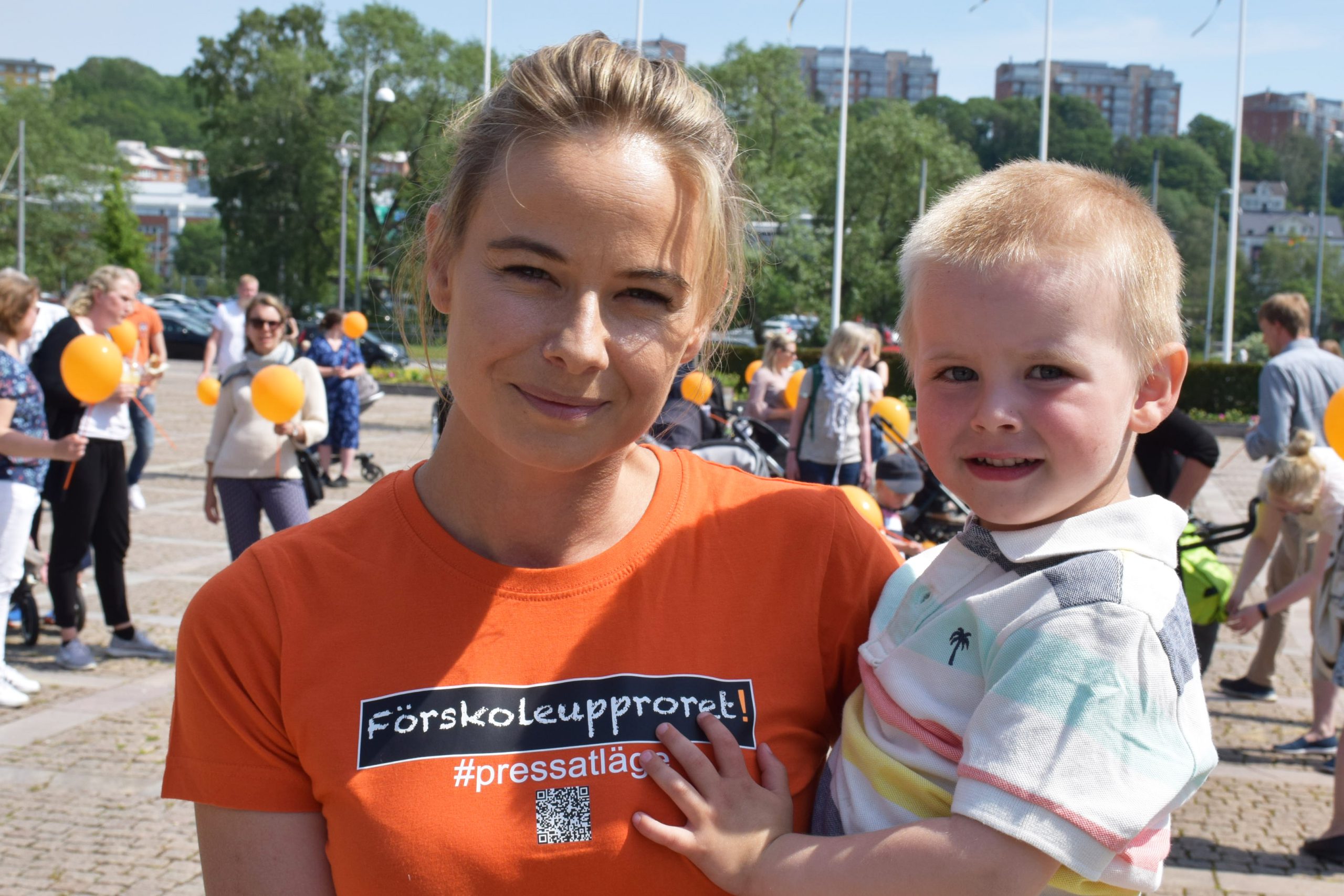 – Som det ser ut nu är det inte ens någon som kan sjukanmäla sig! Är det verkligen lämpligt av politikerna att utsätta förskolepersonalen för sådan press? säger Mölndalsbon och småbarnsföräldern Madeleine Thyrén Halling, som är med och arrangerar en protest mot nedskärningarna utanför stadshuset.