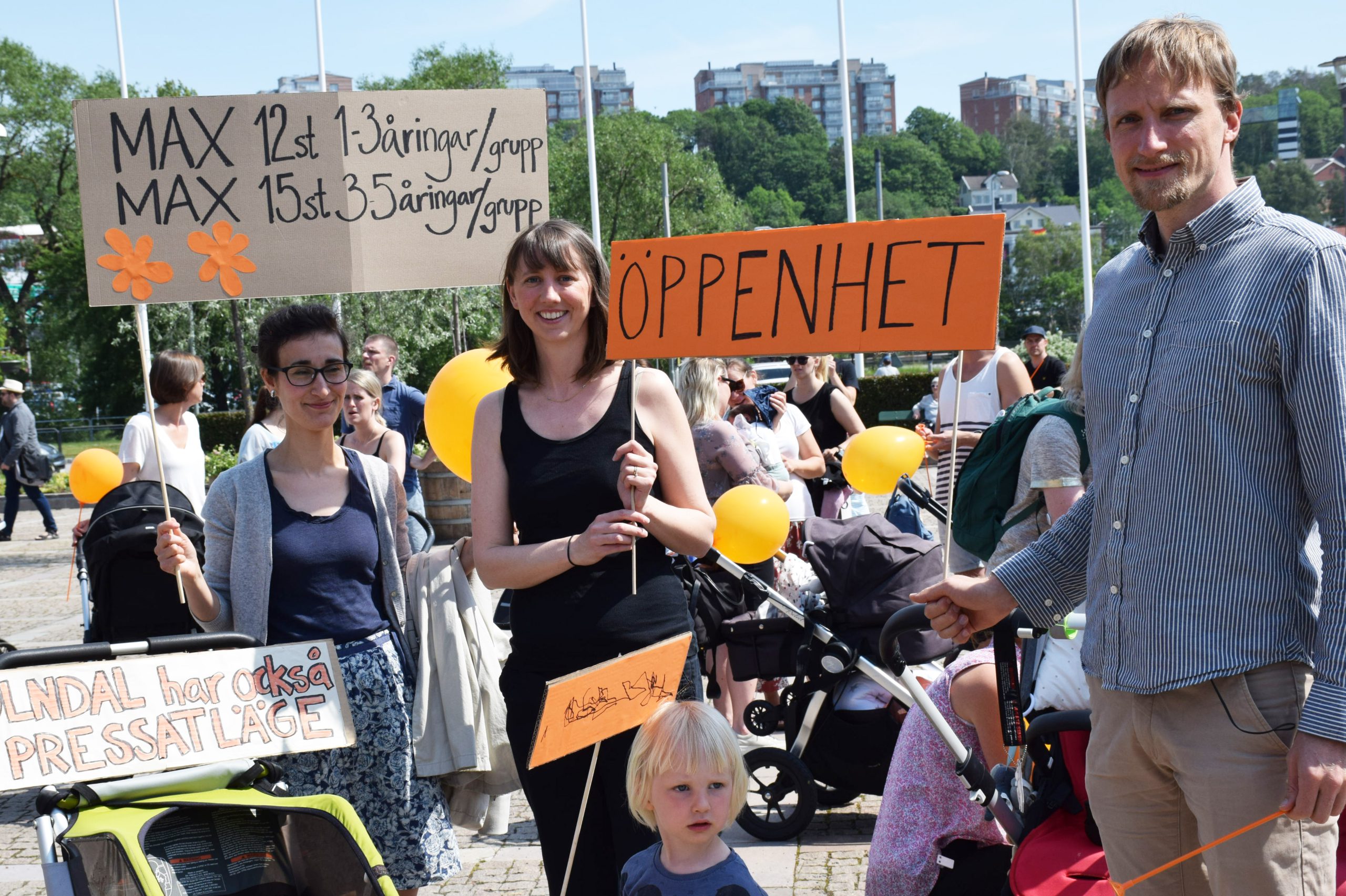 – Vi ställer upp på deras krav, säger Mölndalsbon Lina, som är på plats tillsammans med vännerna Julia och John. De har alla barn i förskoleålder.
