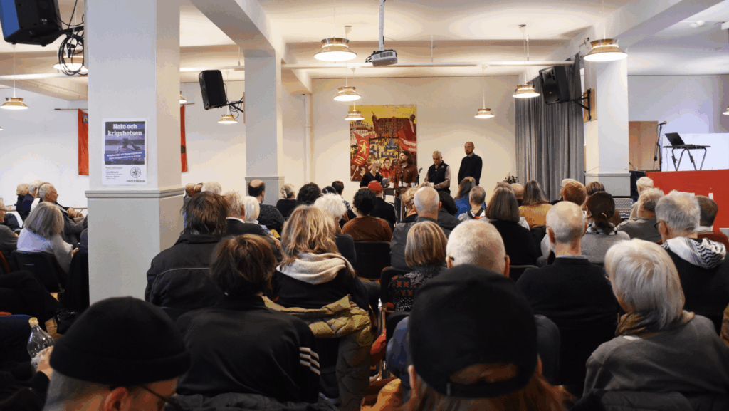 Det var fullsatt till sista stol när tidningen Proletärens chefredaktör August Eliasson på söndagen hälsade välkommen till ett öppet möte i Göteborg på temat Nato och krigshetsen.