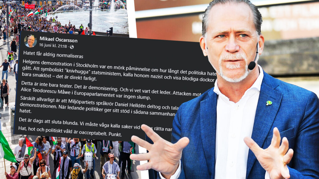 Tusentals marscherade för Palestina i Stockholm i helgen. Daniel Helldén var en av dem – men efter ett högerdrev ångrar han sitt deltagande. Fotograf: Achim Rödner, Skärmdump Facebook, Frankie Fouganthin