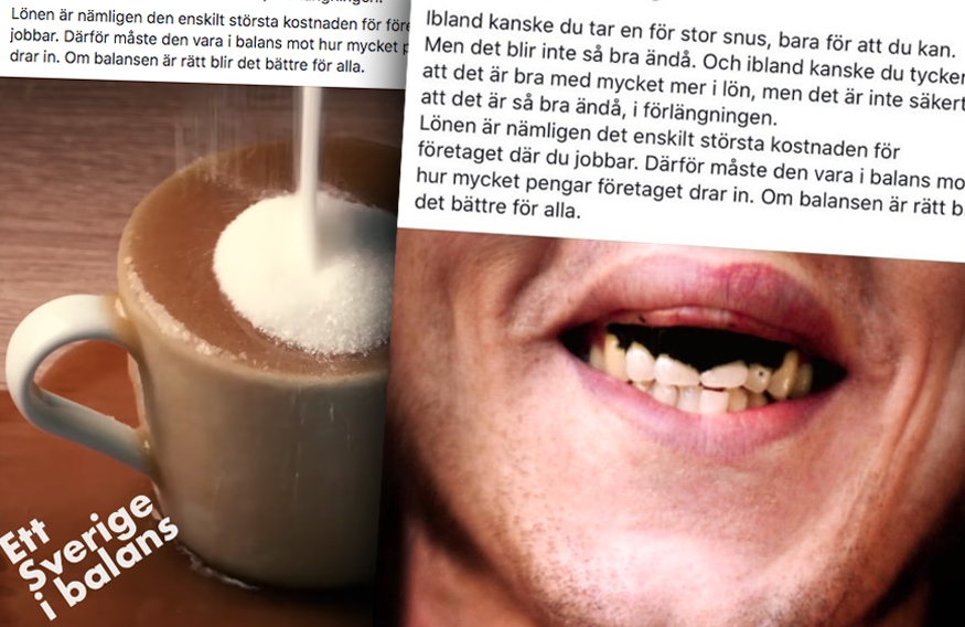 Resultatet: Reklamkampanjen Ett Sverige i balans. ”Balansen” gäller naturligtvis inte vinsterna. Men det behöver ju inte löntagarna höra.