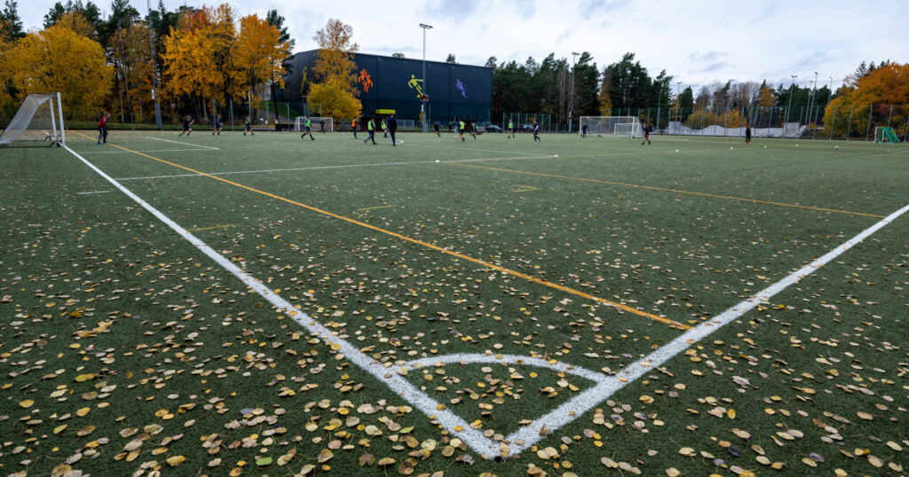 Nacka har beslutat att släcka strålkastarna runt Myrsjö IP klockan 19.00 på grund av att ungdomars spontanfotboll störts av nazister. Fotograf: Facebook/Nacka Kommun