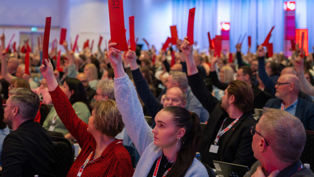 Med siffrorna 240-69 röstade ombuden på norska LO:s kongress för en bojkott av Israel. Fotograf: LO/Kirsten Lia