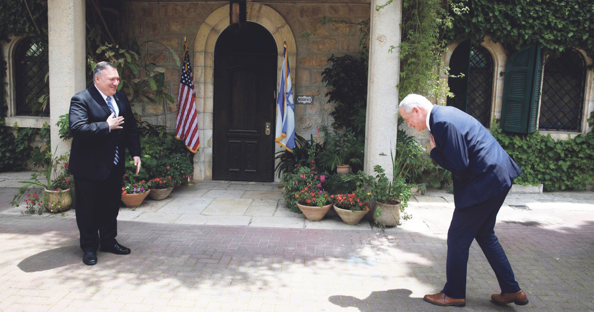 I koalitionsavtalet mellan Gantz blåvita parti och Netanyahus Likud står det att annektering kan påbörjas från och med den 1 juli. Den Nazarethbaserade brittiske journalisten Jonathan Cook skriver att det är troligt att Pompeo var i Jerusalem – dit Donald Trump 2017 beslutade flytta USA:s ambassad – för att se till att Gantz inte sätter käppar i hjulet för den annektering som är en del av ”århundradets plan”, som Trump själv kallar den ”fredsplan” han presenterade i januari i år, som i korthet ger allt åt Israel och inget åt palestinierna.