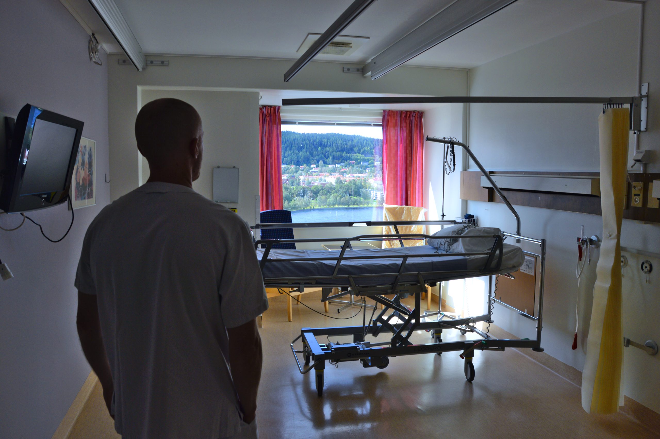 Det är september och den bleka sensommarsolen lyser svagt in i det tysta rummet. På våningsplan elva på Östersunds sjukhus gapar patientsalarna tomma.