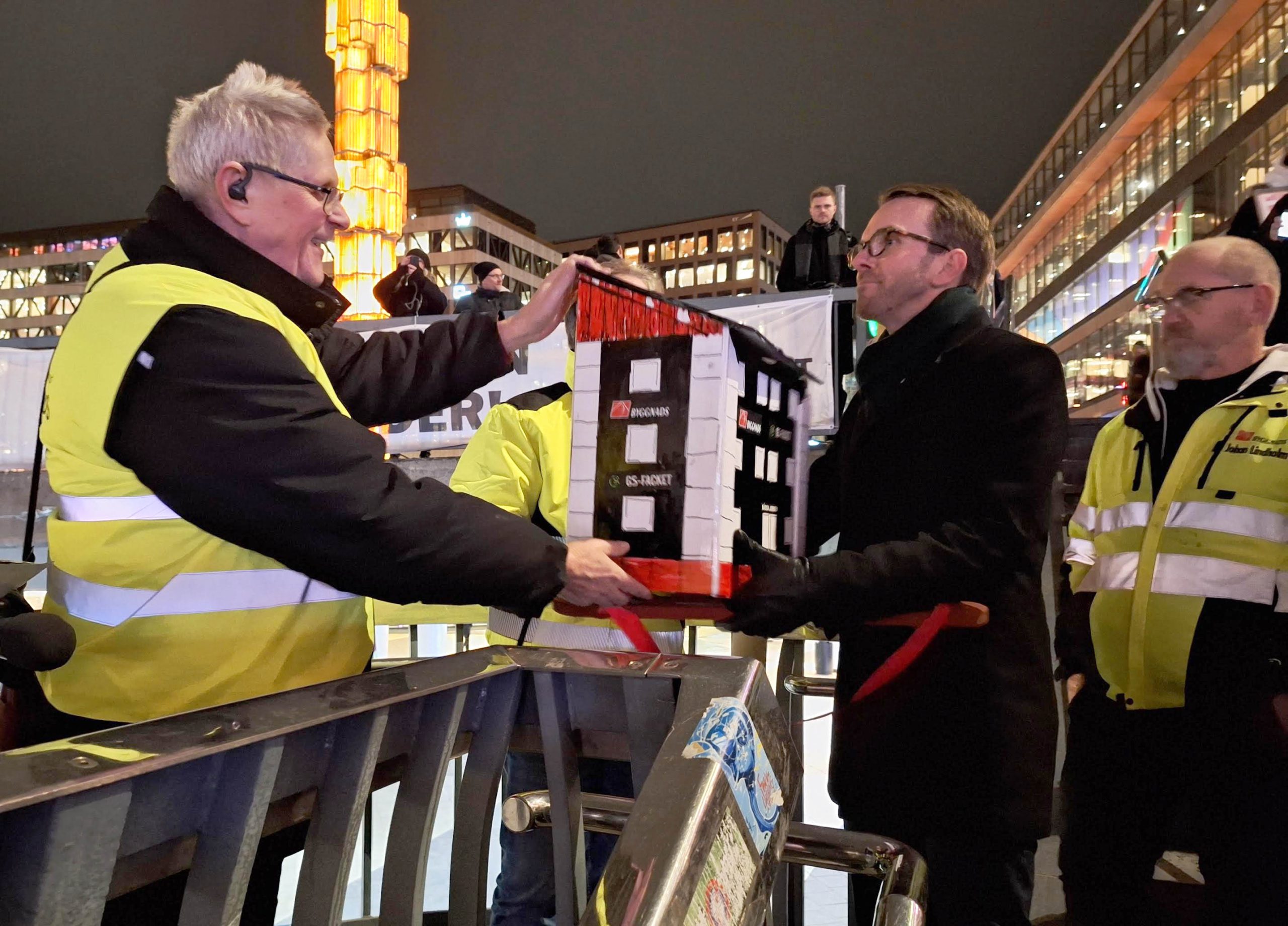 Det är bostads- och infrastrukturminister Andreas Carlsson (KD) som är ytterst ansvarig i regeringen för statliga satsningar inom byggsektorn. Men Carlsson är tyst. Lika tyst var han när han fick ta emot de drygt 18.100 underskrifterna från arbetare och andra som skrivit på under parollen Bygg bort krisen – bygg bostäder, en kampanj som pågått sedan början av december. De underskrifterna, snyggt inbyggda i ett litet hus, fick Carlsson ta emot av företrädare för kampanjen.