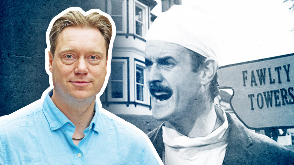 Regeringens säkerhetsrådgivar-fars får Basil Fawlty att framstå som en lugn och sansad karl – och hans hotell som exceptionellt välskött. Fotograf: Proletären / BBC / Montage: Proletären