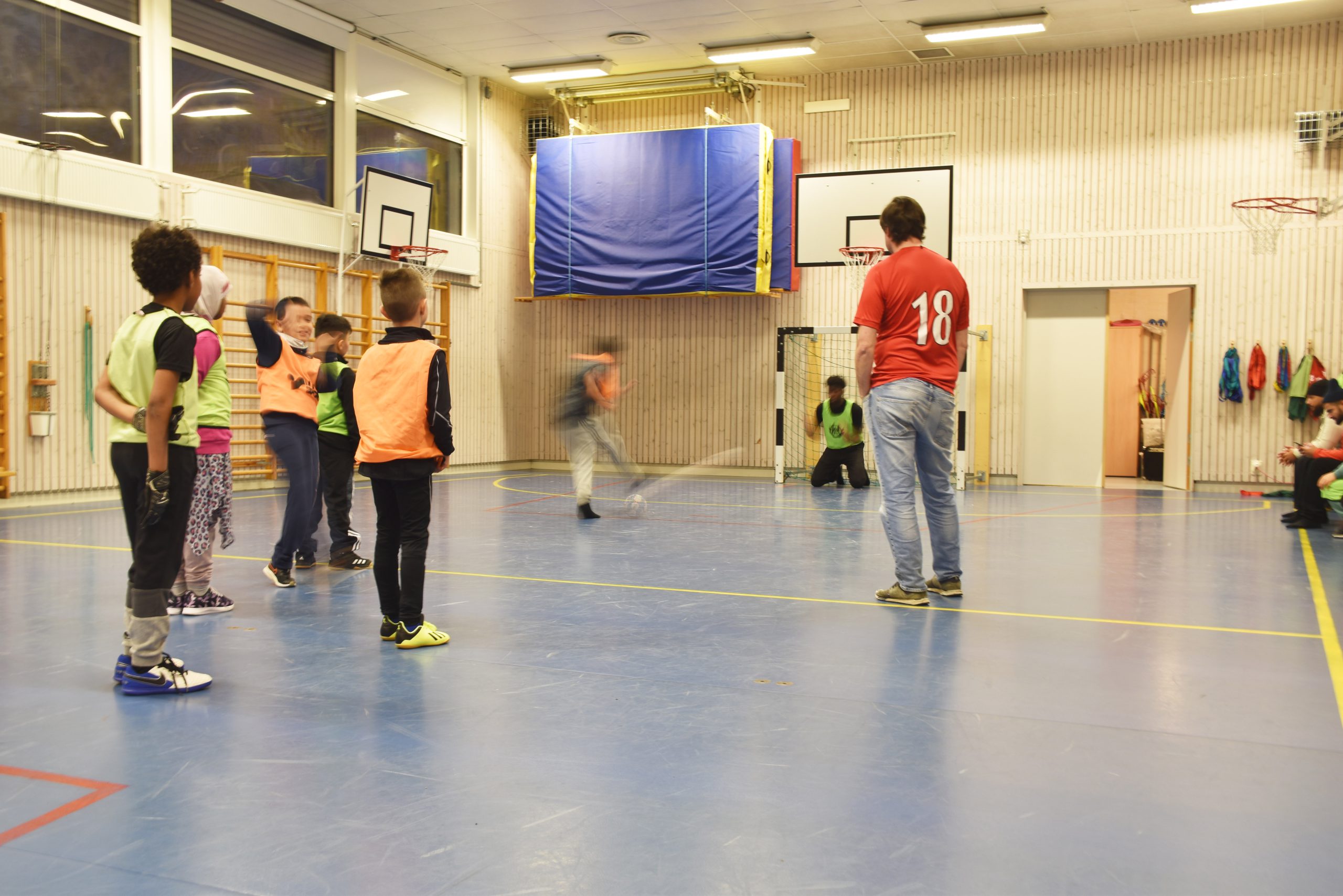 I en förort på andra sidan stan en timmes spårvagnsfärd från Teleskopsgatan ligger Vättnedalsskolan. Det har hunnit bli mörkt. I idrottshallen håller Proletären FF:s ordförande Henrik Källén i eftermiddagsfotboll för ett tiotal ungar i lågstadieåldern. Ljudvolymen är hög, golvet skriker från gympaskorna. Det är gröna västar mot orangea västar.