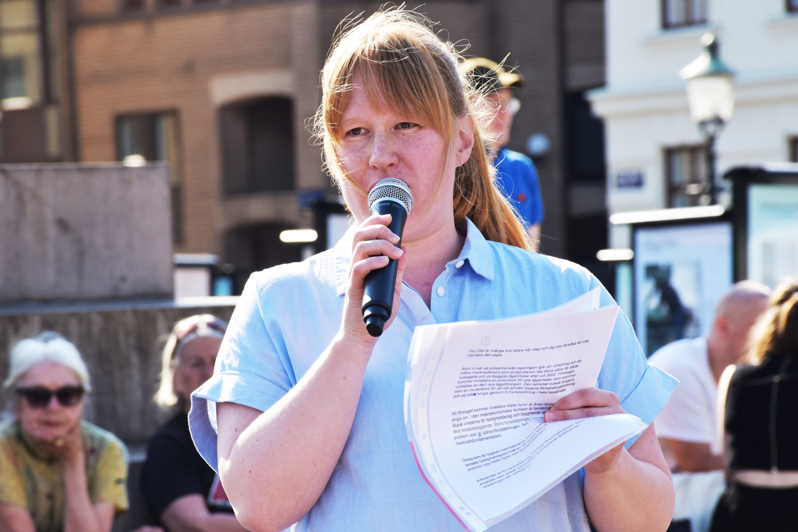 – Det kommer bli höjda hyror för alla och klyftorna som finns kommer öka ytterligare, säger hyresgästen Kielo Stenbacka, som är på plats för att demonstrera.