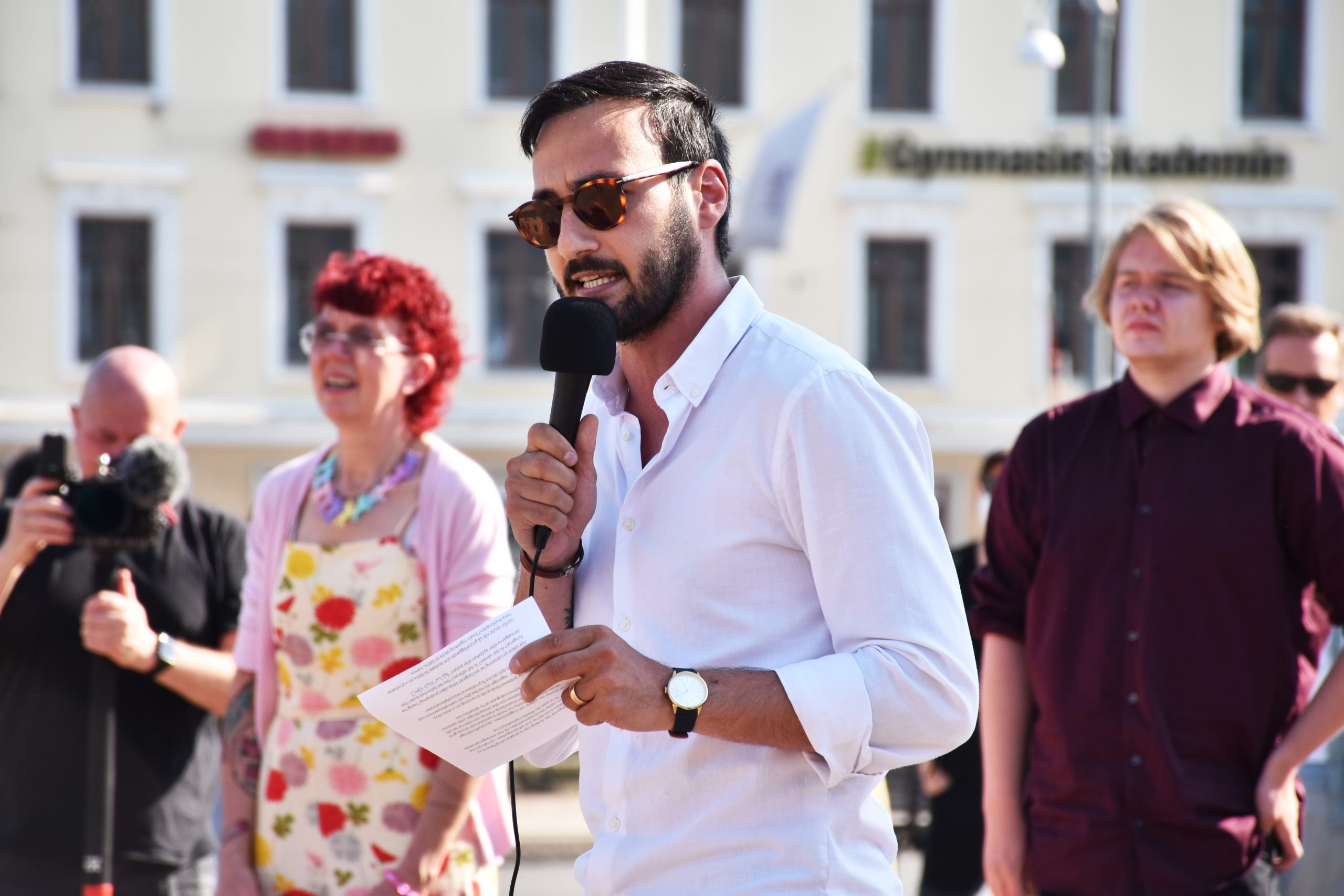 – Förslaget gynnar enbart fastighetsägarna och de rika, säger Tony Haddou, riksdagsledamot för Vänsterpartiet, och förste talare på demonstrationen.