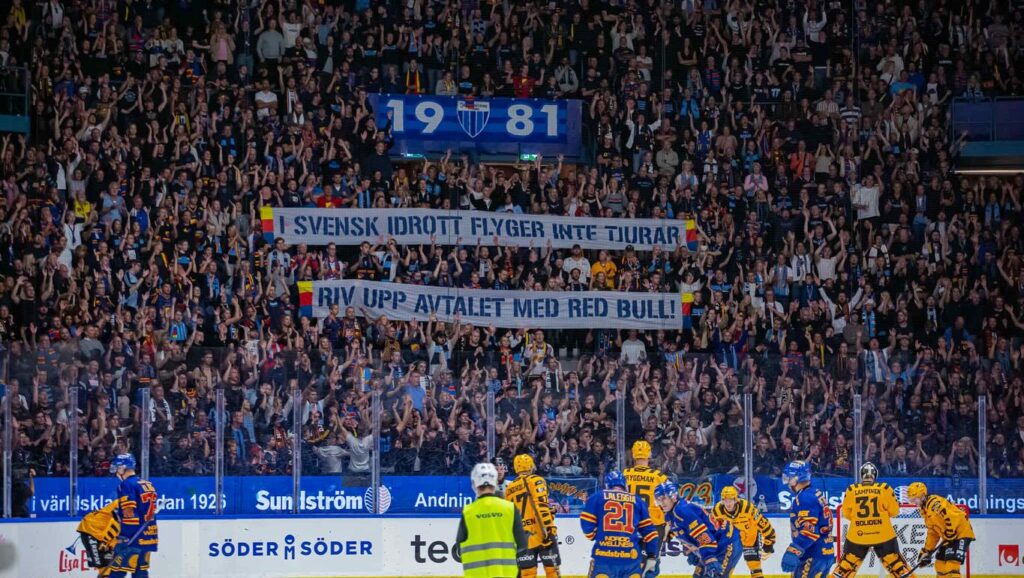 Protester mot Red Bull I SHL-starten