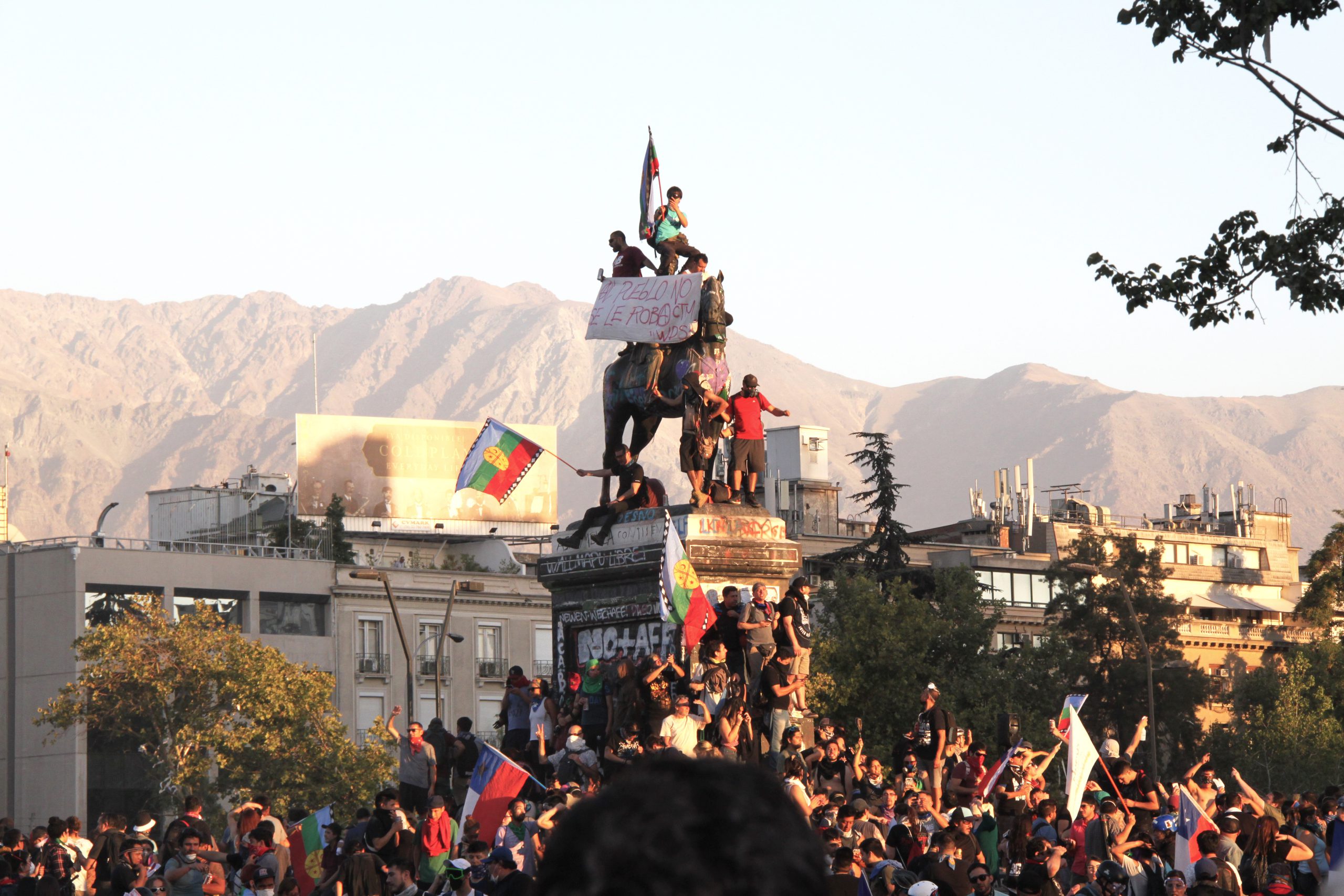 Fredag den 13 december. På eftermiddagen strömmar folk till Plaza Italia, i folkmun värdighetstorget. Platsen har sedan den 18 oktober varit centrum för folkets protester mot regeringen i huvudstaden Santiago. Varje fredag samlas folk, i stor utsträckning ungdomar, som tar torget och gatorna runt omkring i besittning.