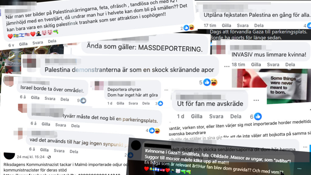 Proletären har under granskningen samlat in hundratals hatiska, rasistiska, terrorhyllande och våldsförhärligande inlägg och kommentarer. Nedan redovisar vi ett axplock av dessa inlägg.