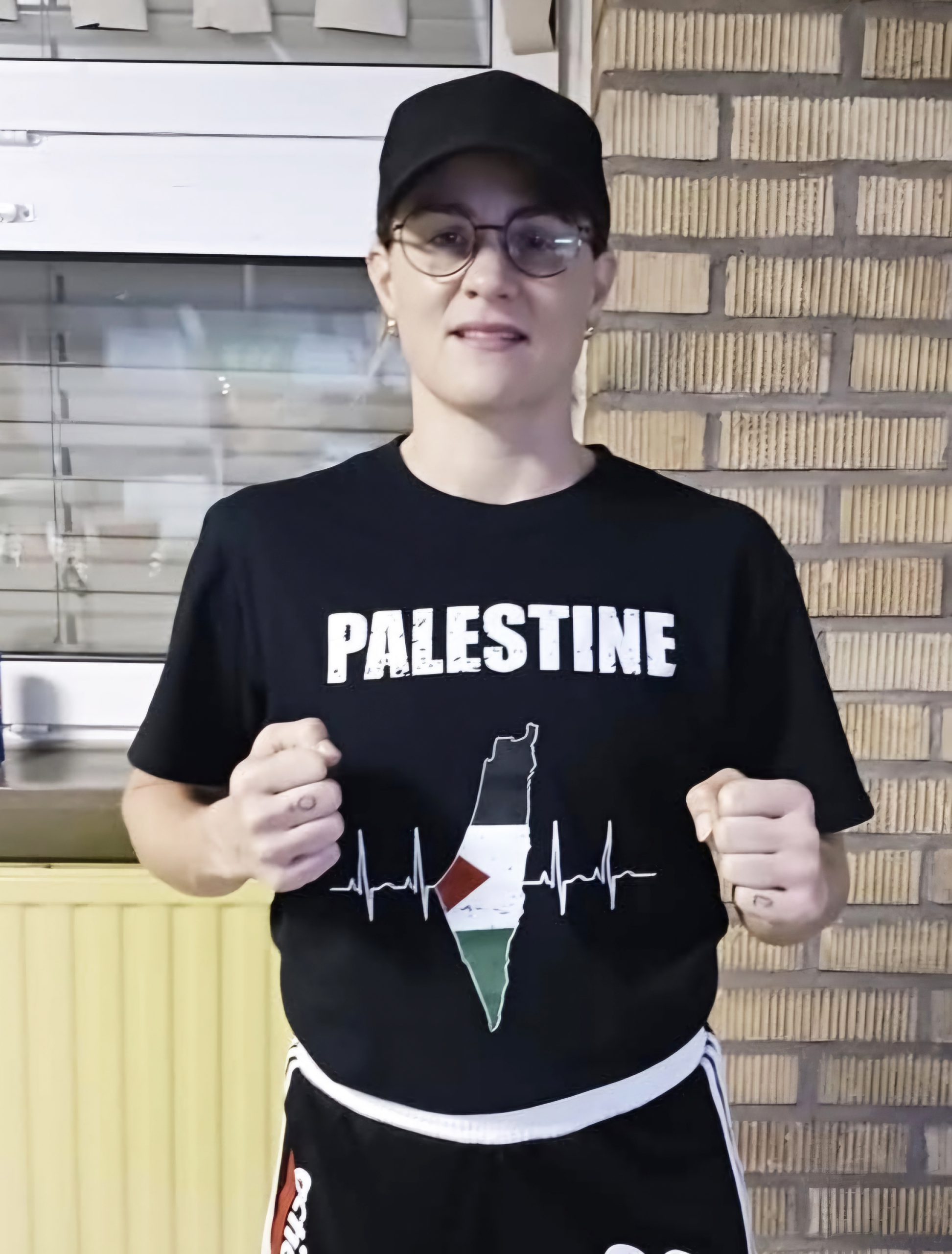 – Det är viktigt att ta ställning, säger Sara Svensson. Det pågår ett folkmord där, och hela världen står och tittar på och ser vad som händer. Att bära en tröja med namnet Palestina är det minsta jag kan göra och jag försöker dela bilden så mycket som möjligt på sociala medier.