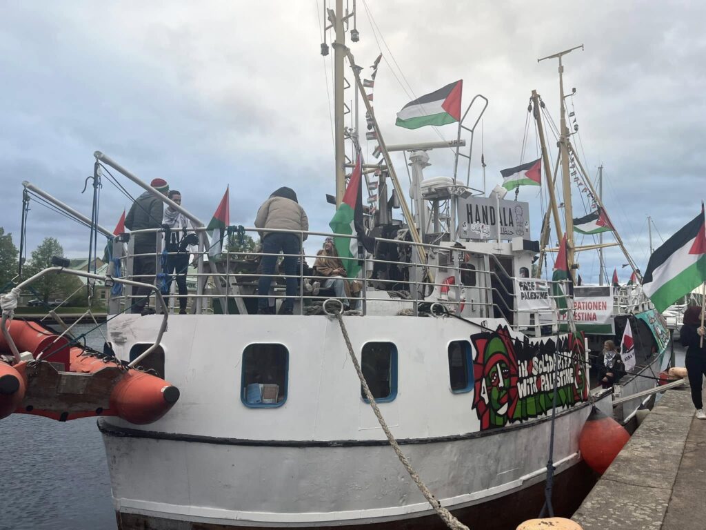 Handala i Halmstads hamn förra året. Fotograf: Facebook/Ship to Gaza