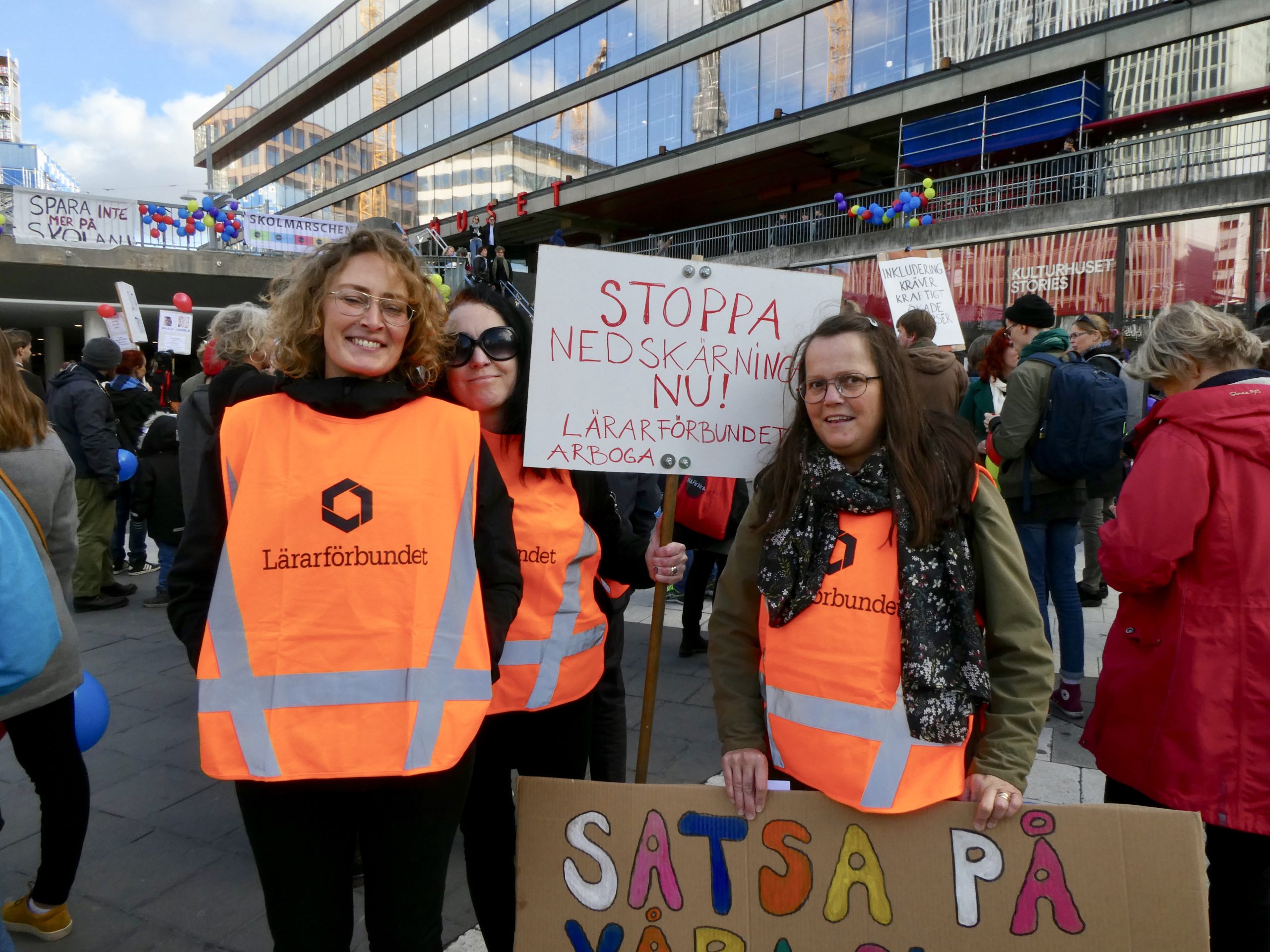 Maria Wernersson är en av deltagarna på söndagens Skolmarsch i Stockholm. Hon undervisar i NO och svenska på en skola i Arboga kommun och har kommit till Stockholm med några kolleger för att delta i demonstrationen.