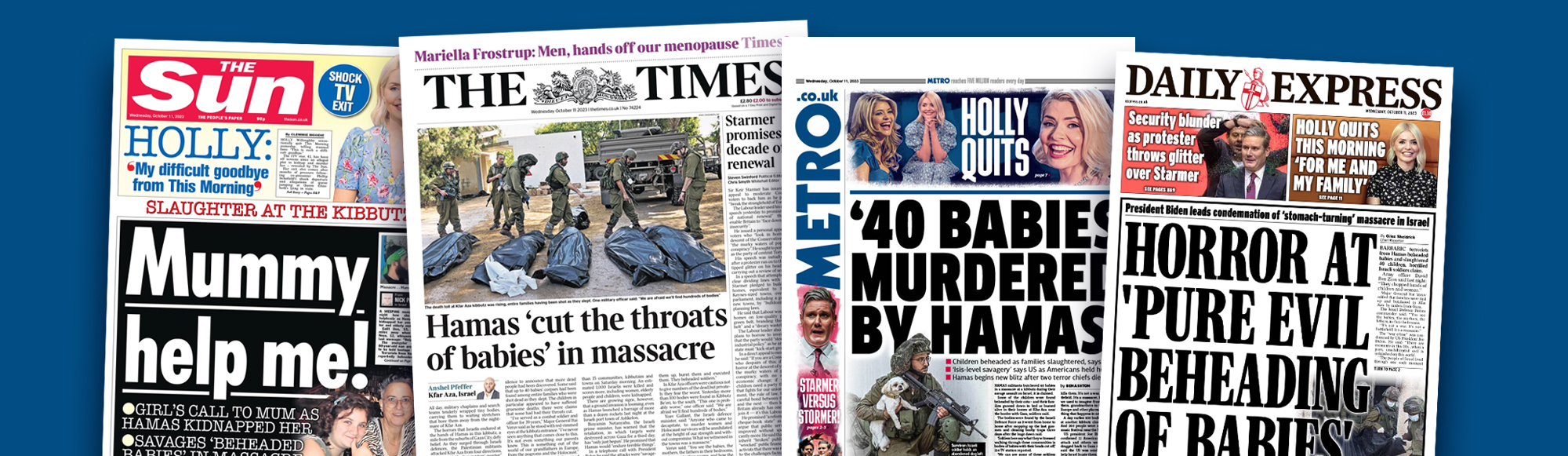 I rapporteringen har en särskilt anmärkningsvärd och otäck uppgift spridits – att 40 israeliska spädbarn skulle ha hittats halshuggna i en bosättning. Påståendet spreds vidare av USA:s president Joe Biden, som på en presskonferens rent av hävdade att han själv sett bilder på de halshuggna spädbarnen – ett uttalande Vita Huset sedan fick ta tillbaka. Även brittiska medier spred uppgiften på sina förstasidor.