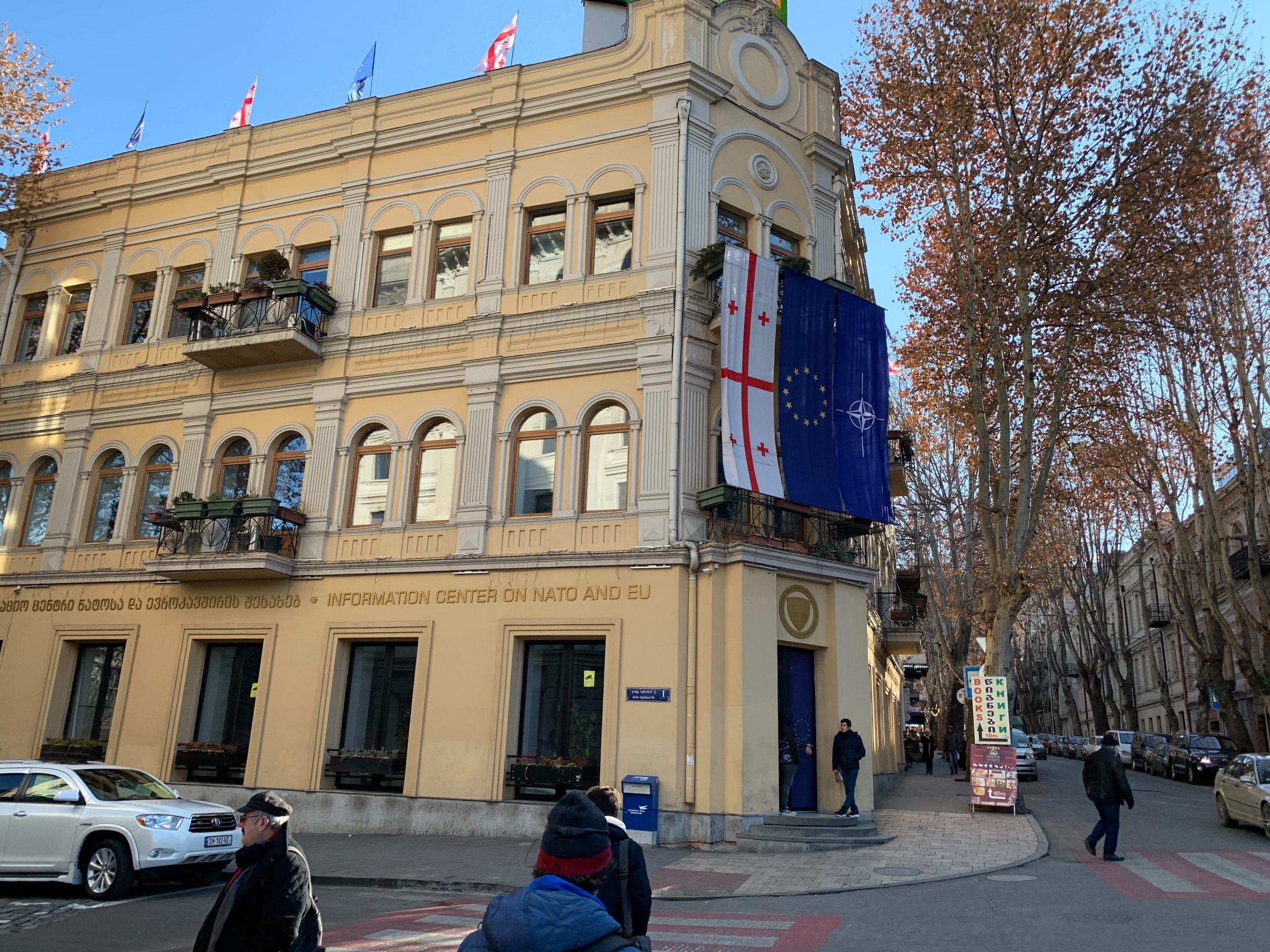 På en av de stora, pampiga byggnaderna vid Frihetstorget i Tbilisis centrum står ”Informationscentrum för Nato och EU”. En hel stor byggnad bara för att informera? Givetvis inte. Därifrån kommer direktiven som oppositionen följer till punkt och pricka, och all propaganda mot Ryssland som öses över hela samhället.