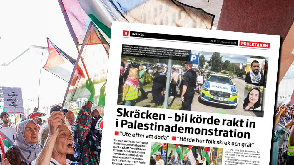 Andra exempel på hur Palestinaaktivister hängts ut eller fysiskt attackerats har Proletären rapporterat om tidigare. Det är direkt stötande att höra statsministern tala om att opinionsbildningen från Palestinaaktivister gått över styr, när hans egen svans går till fysisk attack mot demonstrationståg i Sverige.