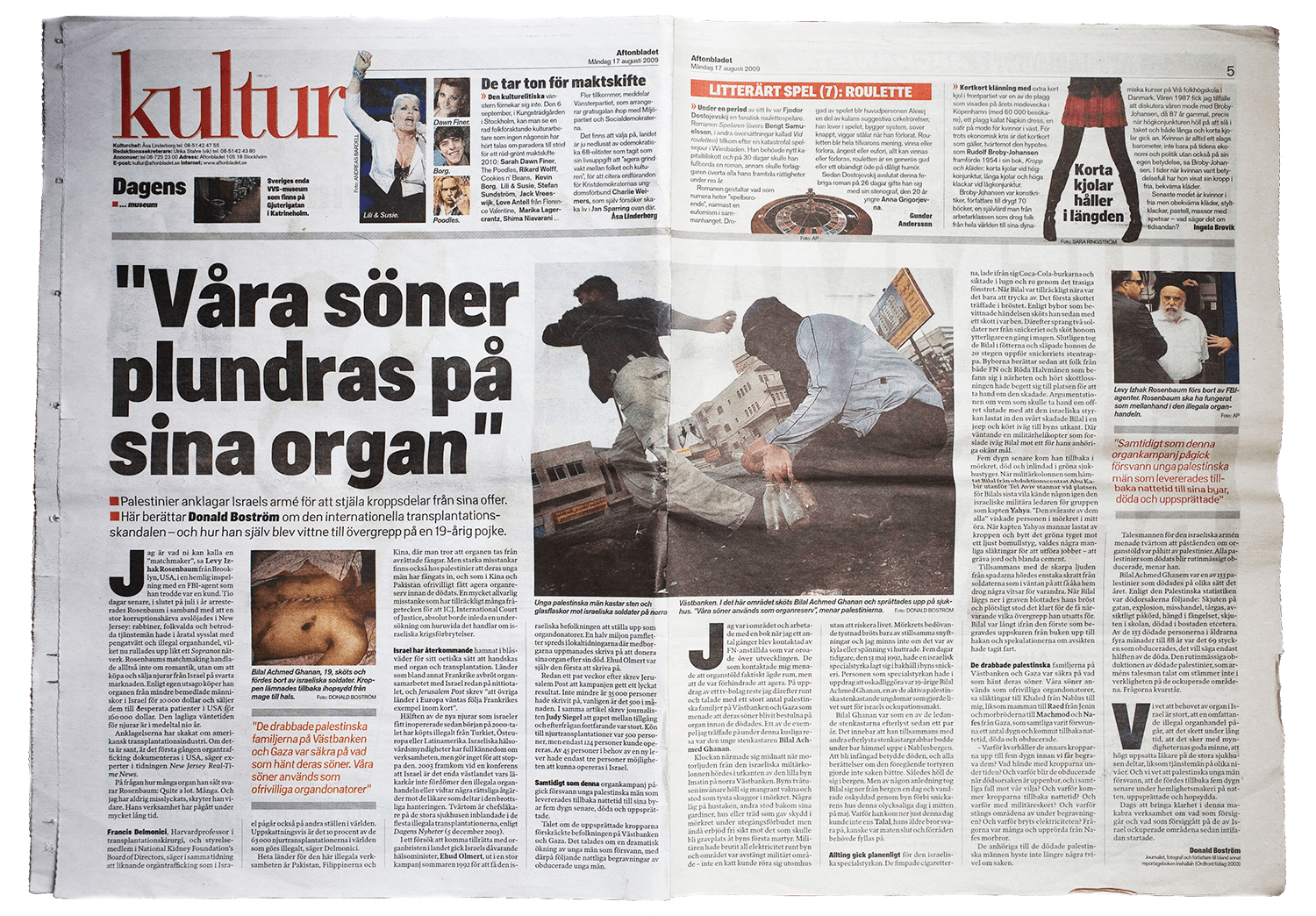 – Efter publiceringen i Aftonbladet blev jag kontaktad av läkare och forskare som i många år försökt stoppa stölderna. När de gav mig möjlighet att besöka det rättsmedicinska institutet i Abu Kabir där organstölderna skett visade de rummen för mig och sa: ”Det var här organen stals”, säger Donald Boström.
