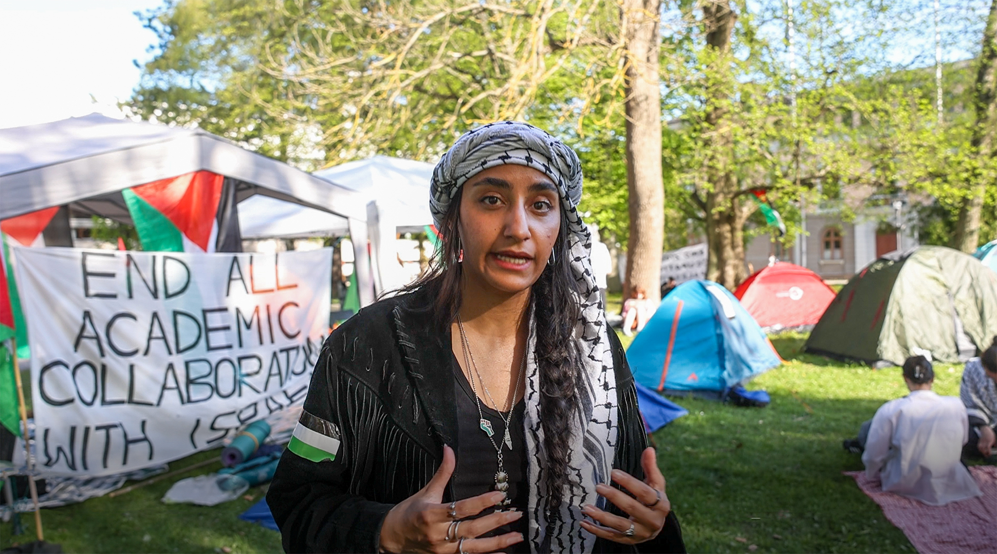– Vi har under sju månader försökt att få administrationen att avbryta allt samarbete med fyra universitet i Israel. Alla fyra är medskyldiga till folkmordet som pågår just nu. Flera av de strategier och vapen som används mot det palestinska folket har utvecklats i de universiteten, säger Oruba Abu-Hammam och fortsätter: