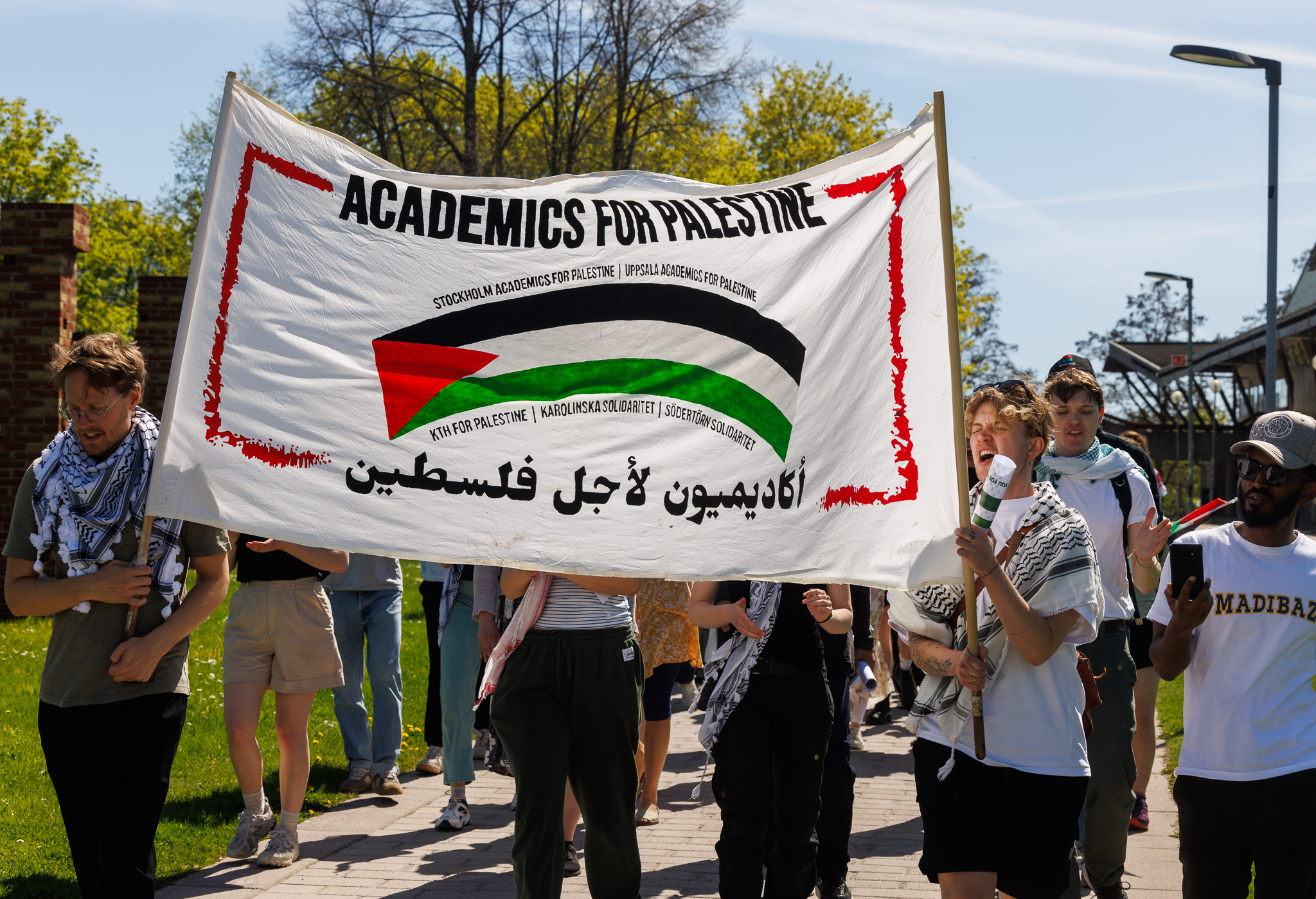 – Det gör Stockholms universitet medskyldigt i det här folkmordet. Det är därför vi vill att universitetet omedelbart avbryter det här samarbetet. Vi vill också att universitetet gör ett uttalande och agerar mot Israels folkmord. Ord räcker inte längre, det behövs handling.