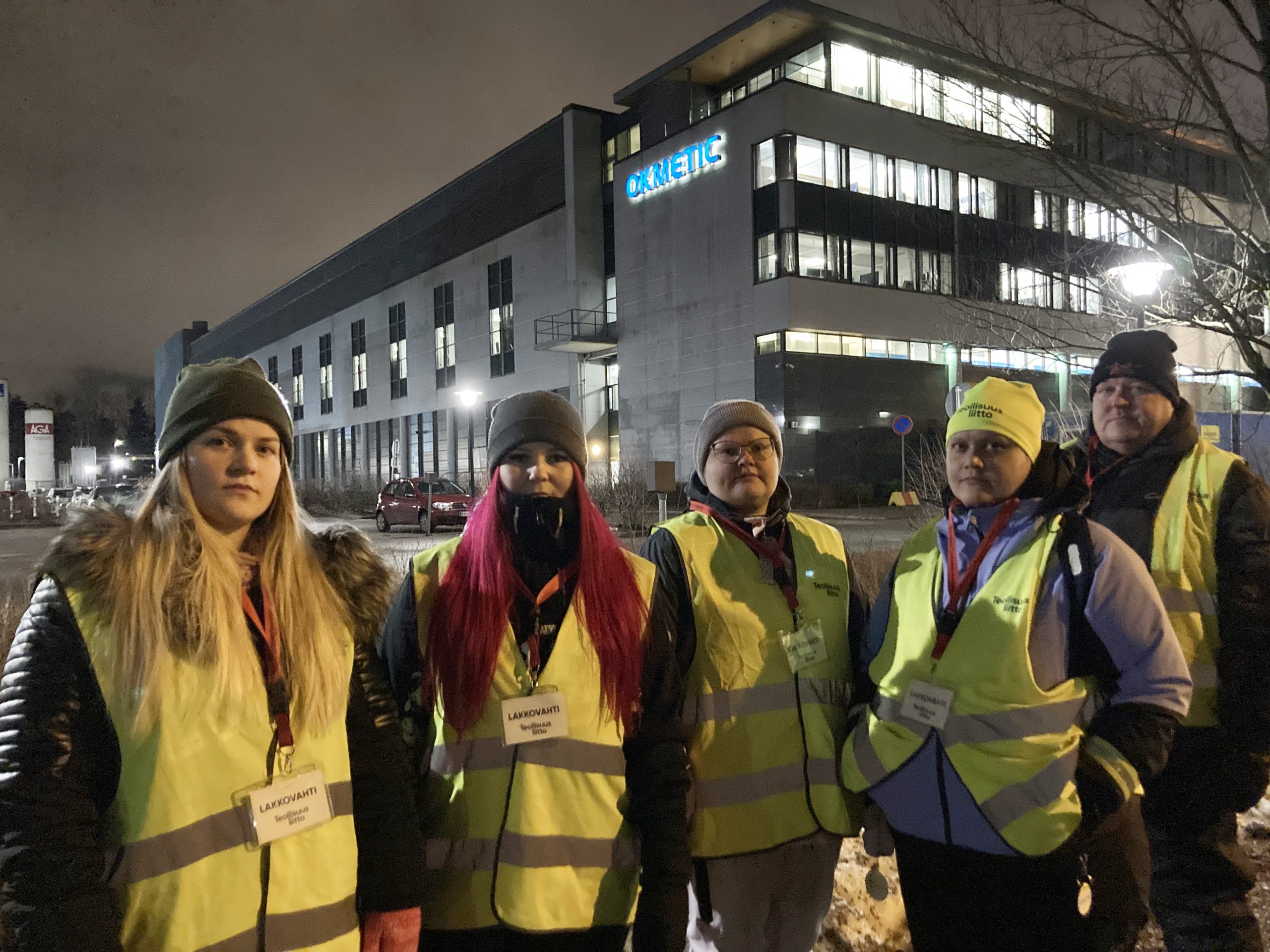 Den stundvis bitande januarikylan hindrar inte strejkvakterna från att hålla posten vid fabriksingången. Två gånger om dagen, inför morgonskiftet och kvällsskiftet, håller de vakt utanför Okmetic enligt ett bestämt schema.