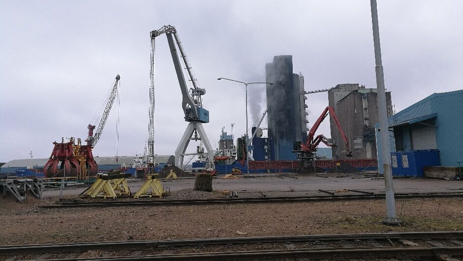 Enligt uppgift ska Stuveribolaget sätta personal i arbete i Halmstads hamn där Hamnarbetarförbundet varslat om strejk. Fotograf: Proletären