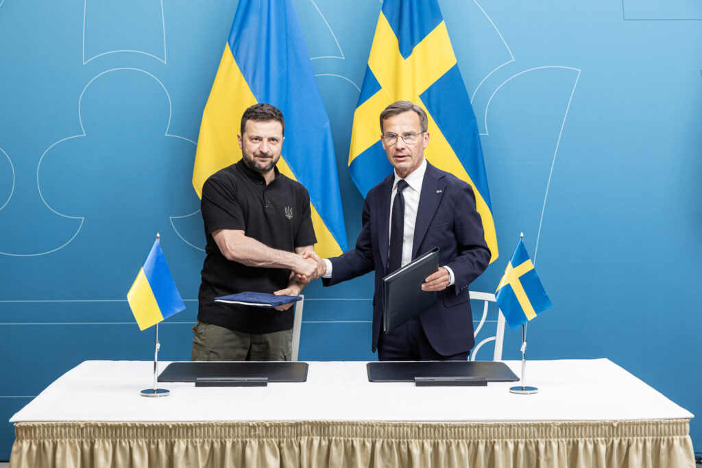 Sveriges statsminister Ulf Kristersson tar emot Ukrainas president Volodymyr Zelenskyj i maj förra året i samband med presentationen av ett säkerhetssamarbete mellan Sverige och Ukraina. Fotograf: Ninni Andersson/Regeringskansliet