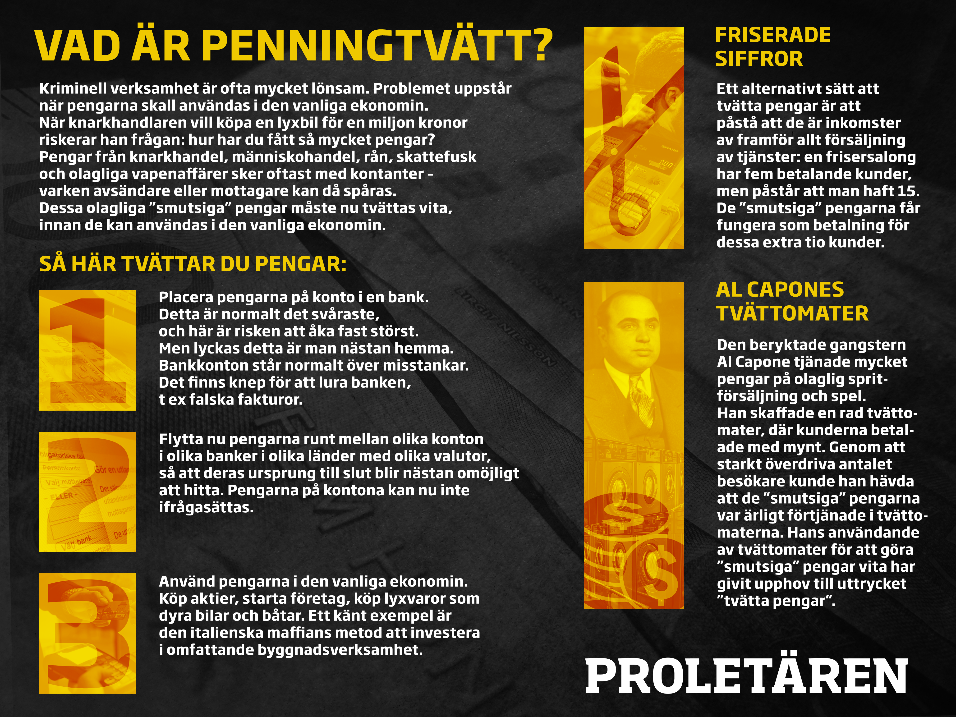 2015 bötfällde Finansinspektionen Handelsbanken med 35 miljoner kronor för att inte ha följt penningtvättsreglerna. Efter att ha fått två varningar av Finansinspektionen för ”allvarliga brister” i bankens övervakning av penningtvätt ålades Nordea att 2015 betala den största möjliga straffavgiften – över fem miljoner euro, över 50 miljoner svenska kronor. Och alla fyra storbankerna hade sin byk med i affären med de läckta Panama-dokumenten, där rika personer fick bankernas hjälp att smita undan skatt genom bluffbolag i Panama.